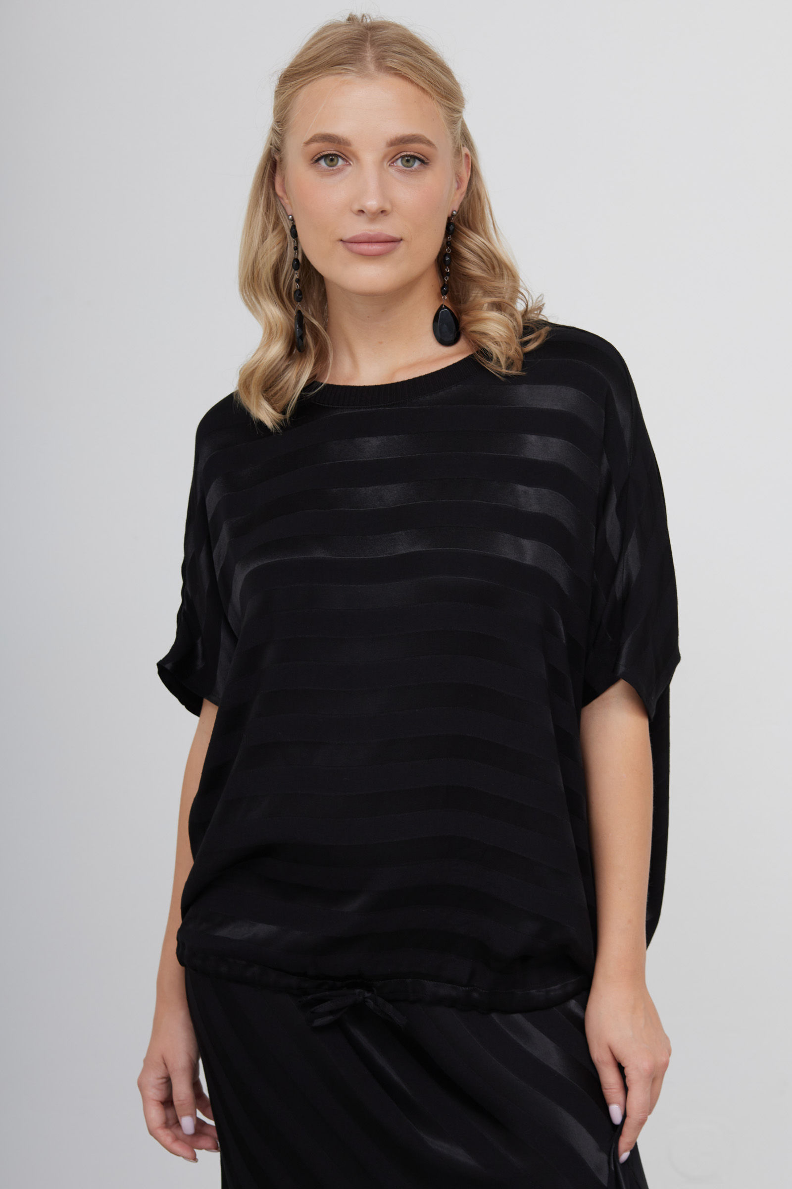 Блуза oversize из струящейся вискозы в атласную полоску.
