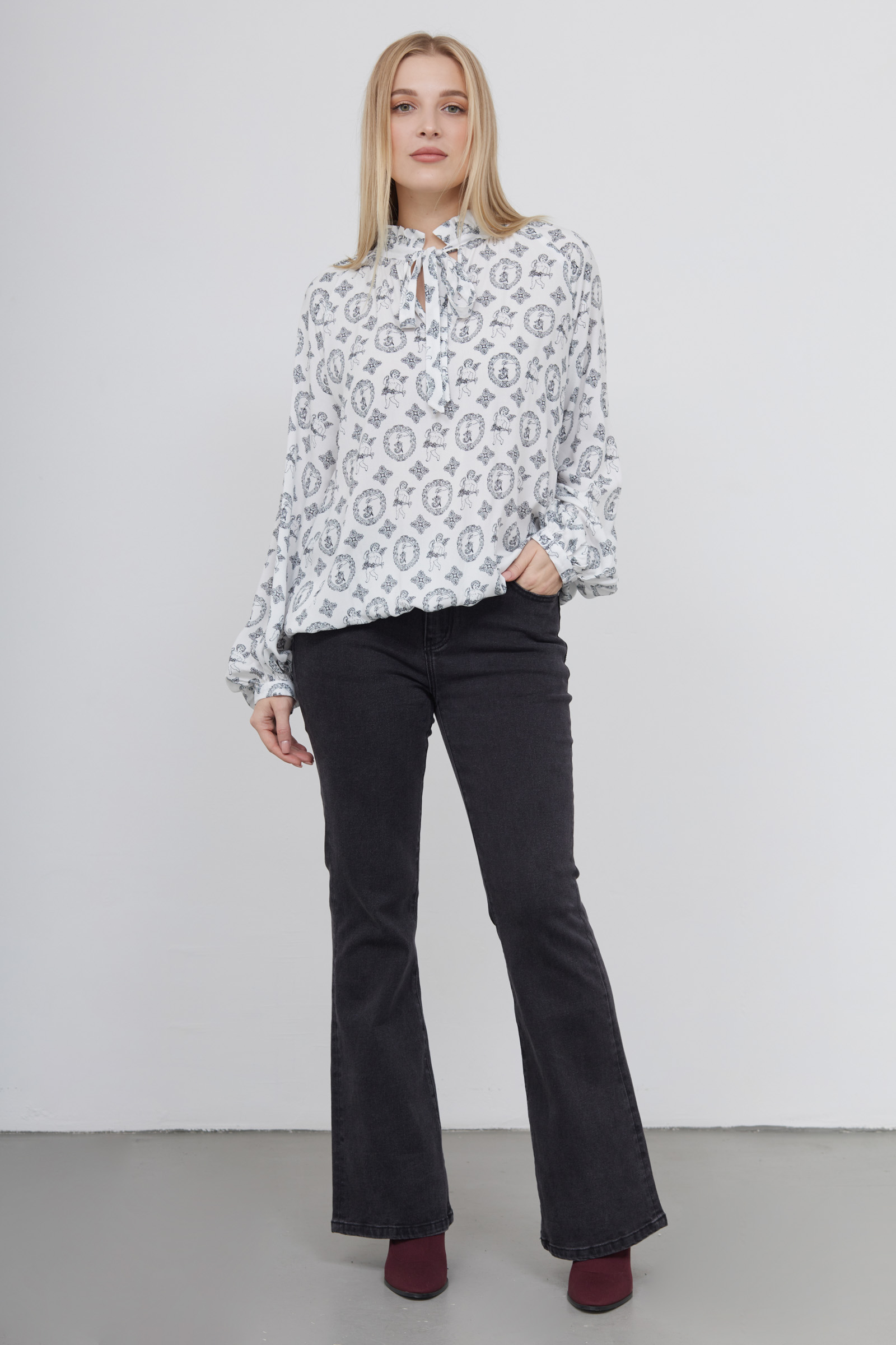 Блузка из вискозы с фантазийным принтом и воротником аскот.