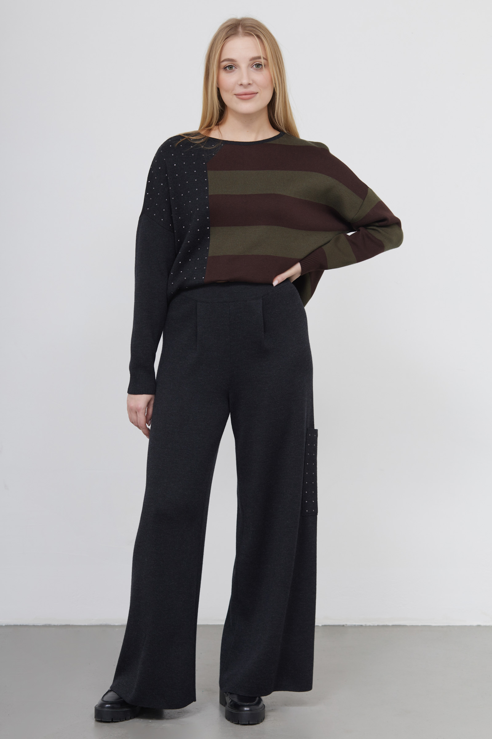 Широкие брюки-карго из мягкого полушерстяного трикотажа.