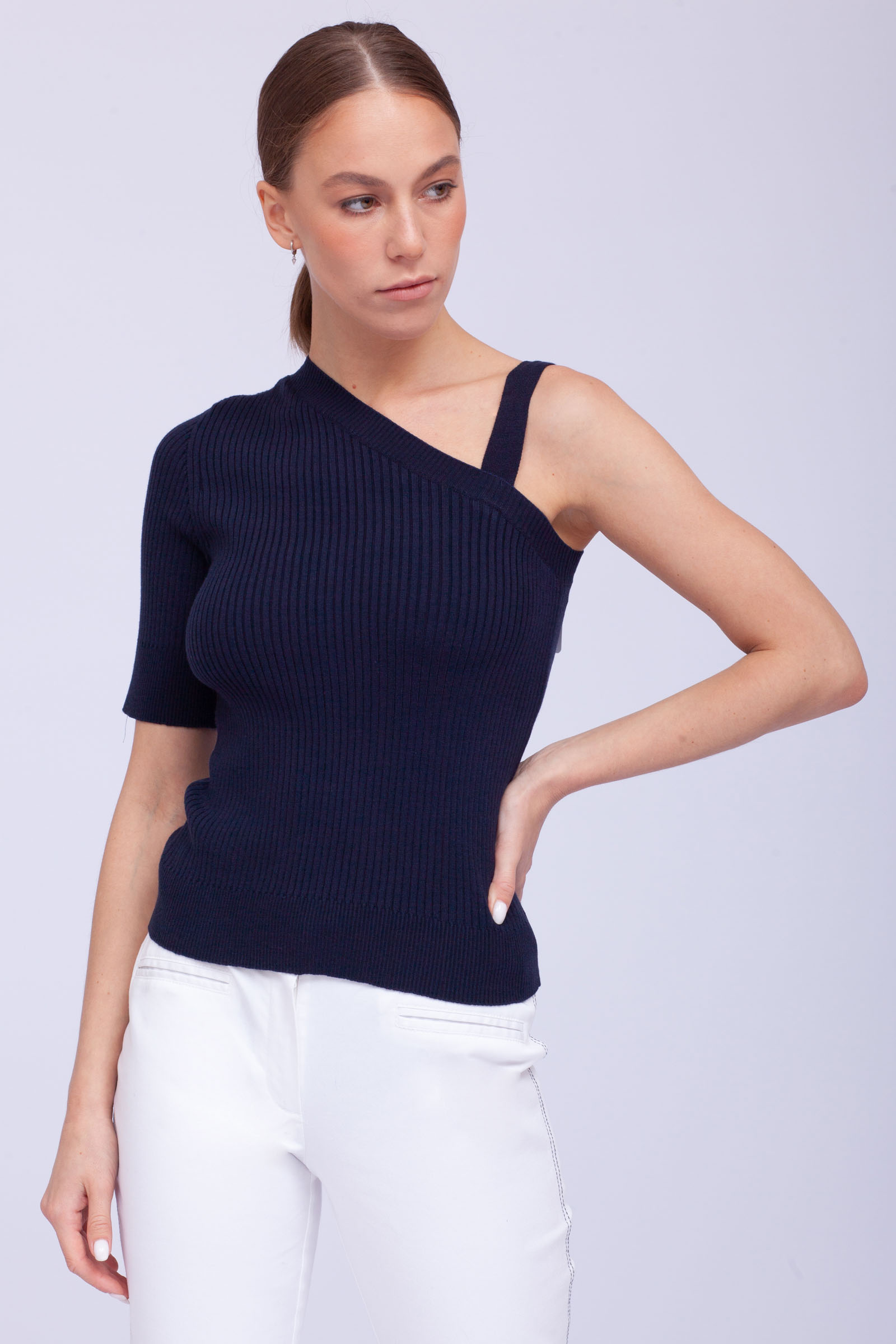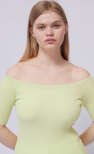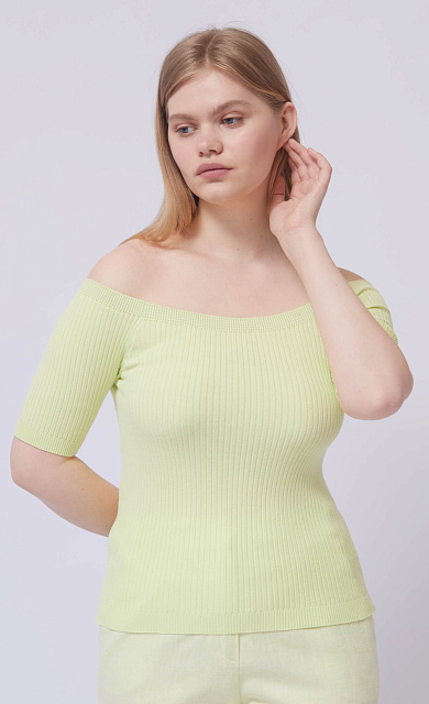 Топ из вязаного трикотажа в рубчик с открытым плечом.