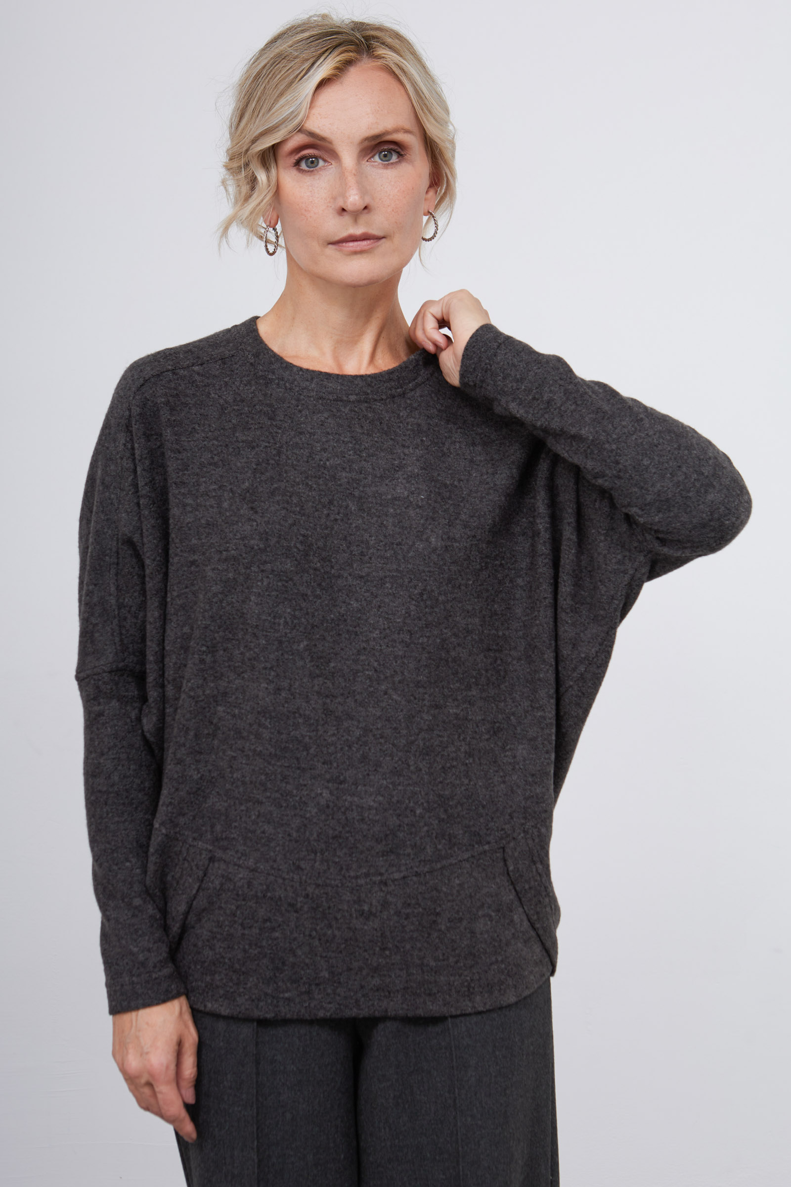 Джемпер oversize из мягкого трикотажа с рукавом летучая мышь.