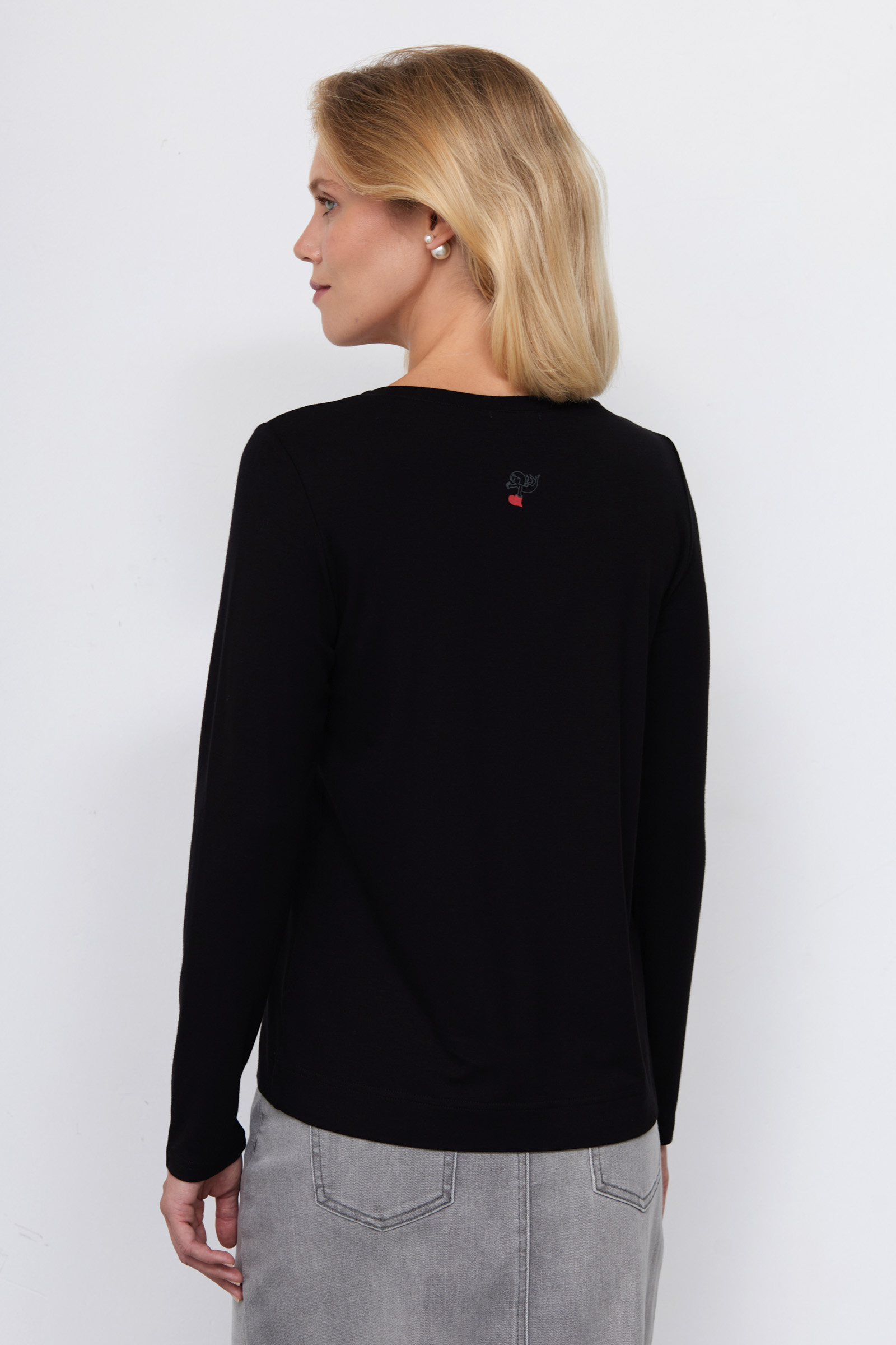Базовый лонгслив из мягкого вискозного трикотажа с минималистичным печатным принтом на спинке.