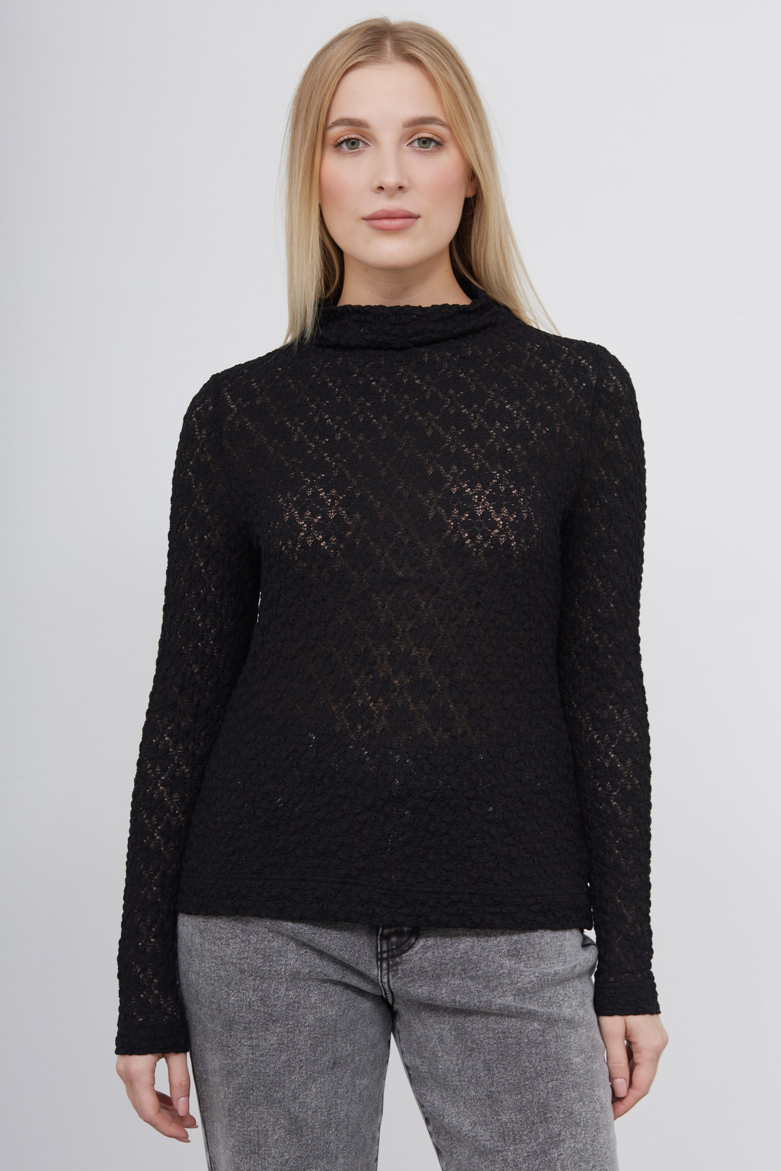 Водолазка из эластичной кружевной ткани с цельнокроеным воротником.