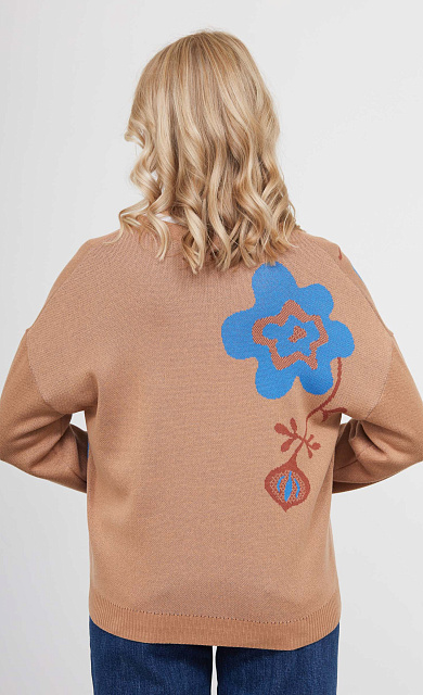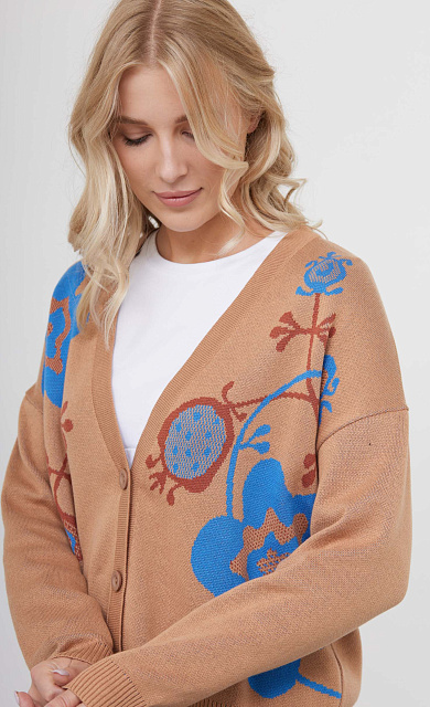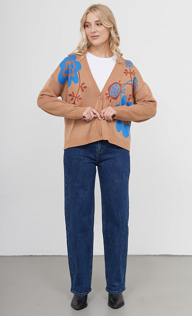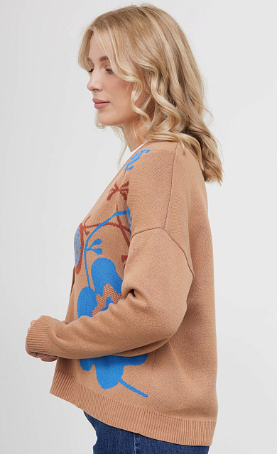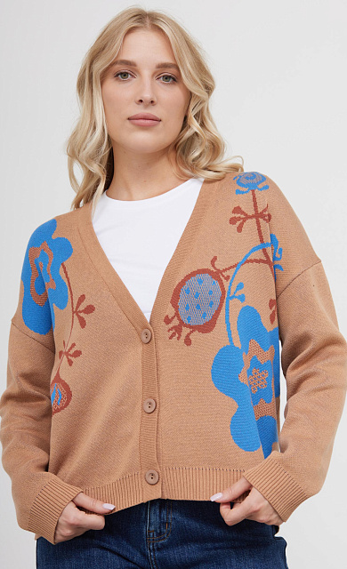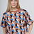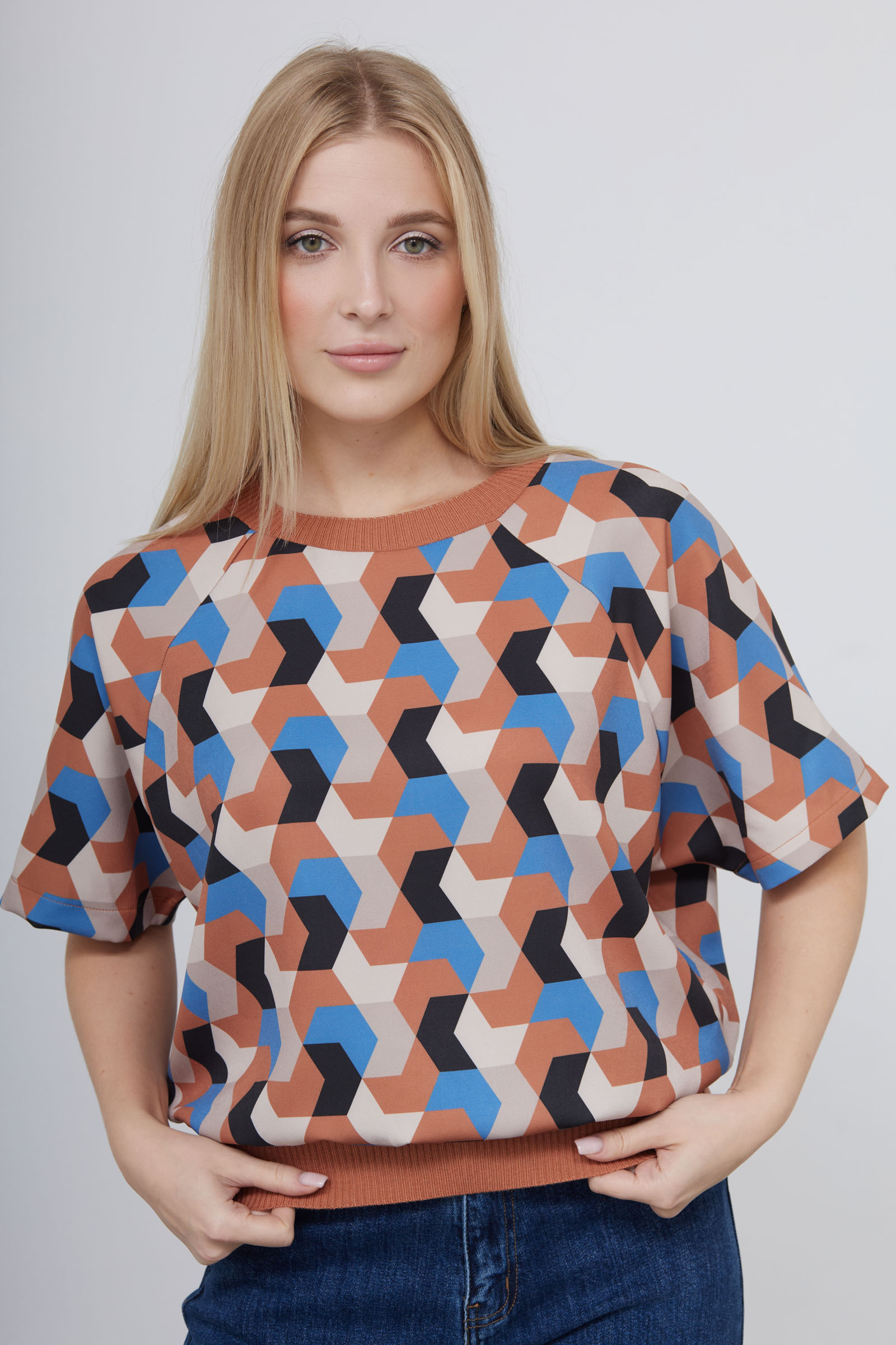 Блузка oversize c короткими рукавами, трикотажной отделкой и геометрическим принтом.
