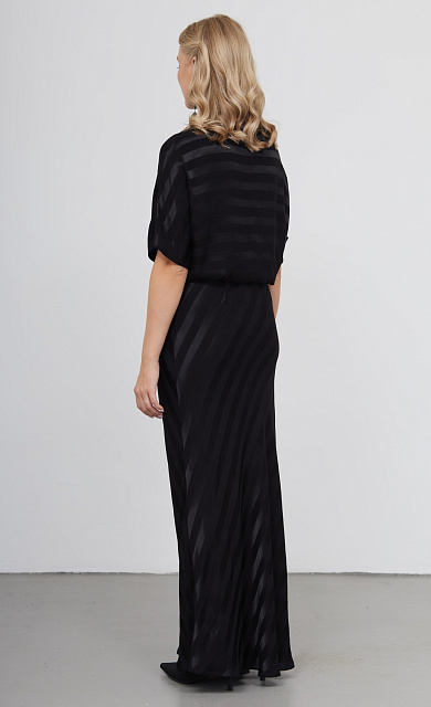 Длинное облегающее платье из эластичной кружевной ткани.