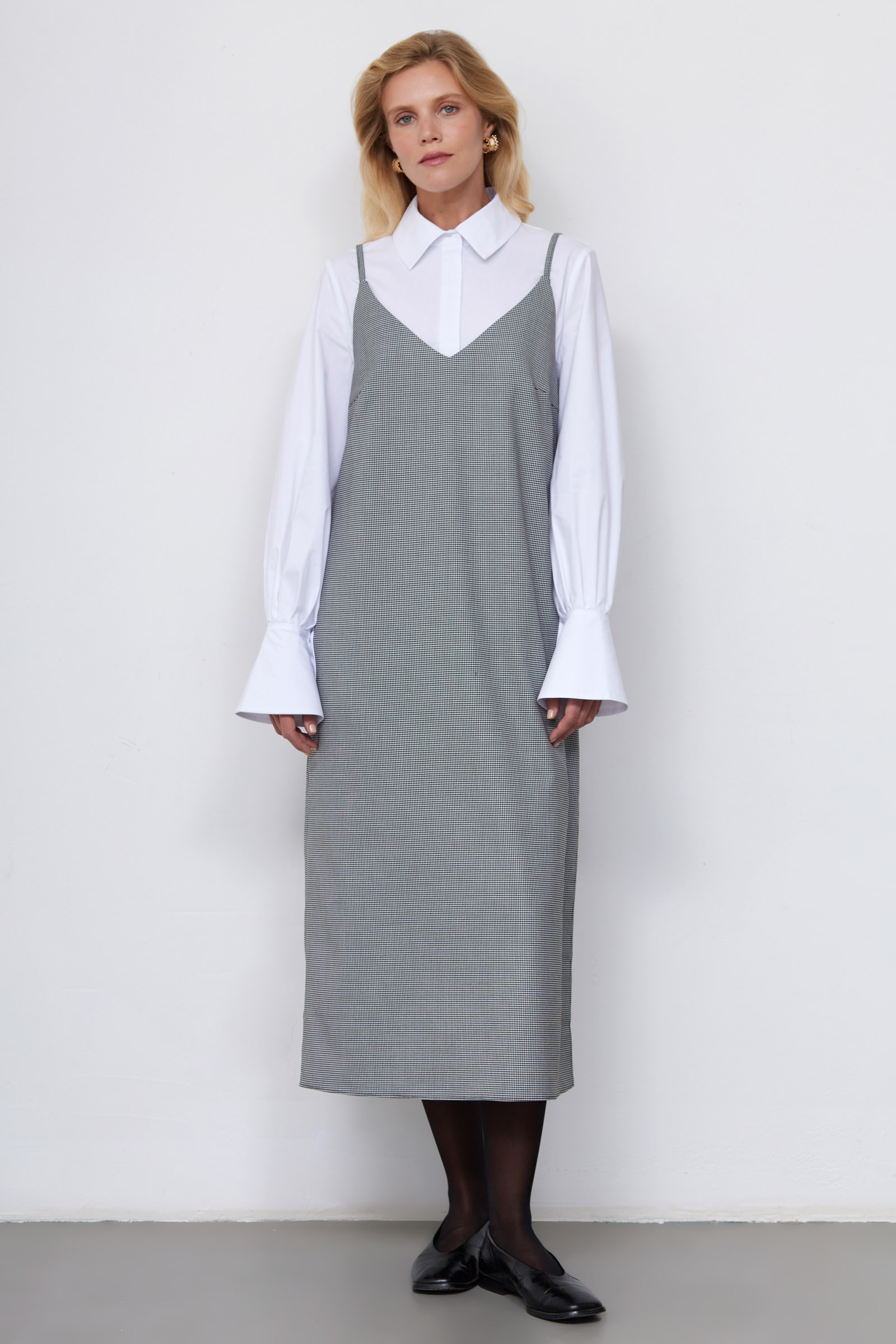 Платье-комбинация из тонкой костюмной ткани с принтом "пье-де-пуль".