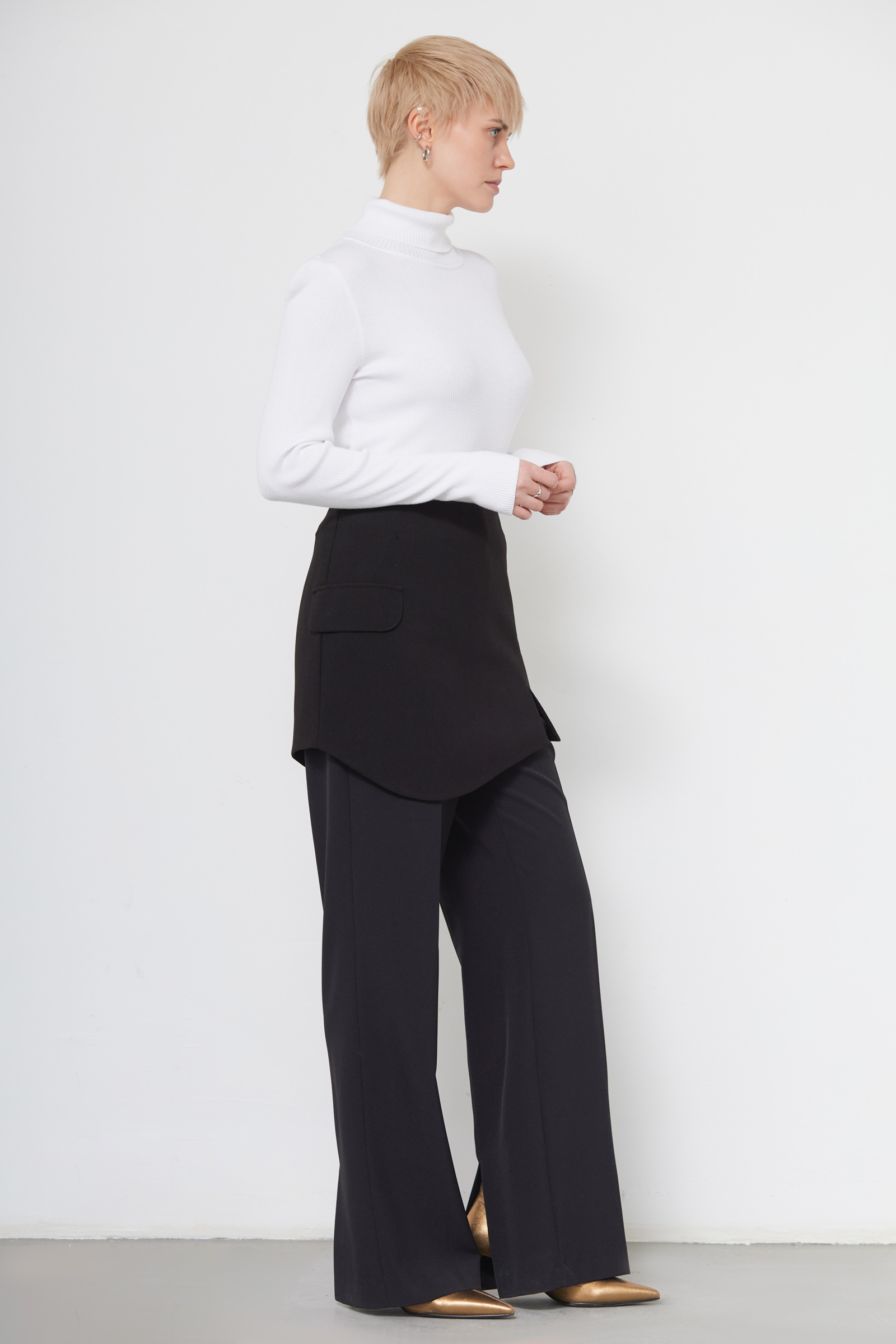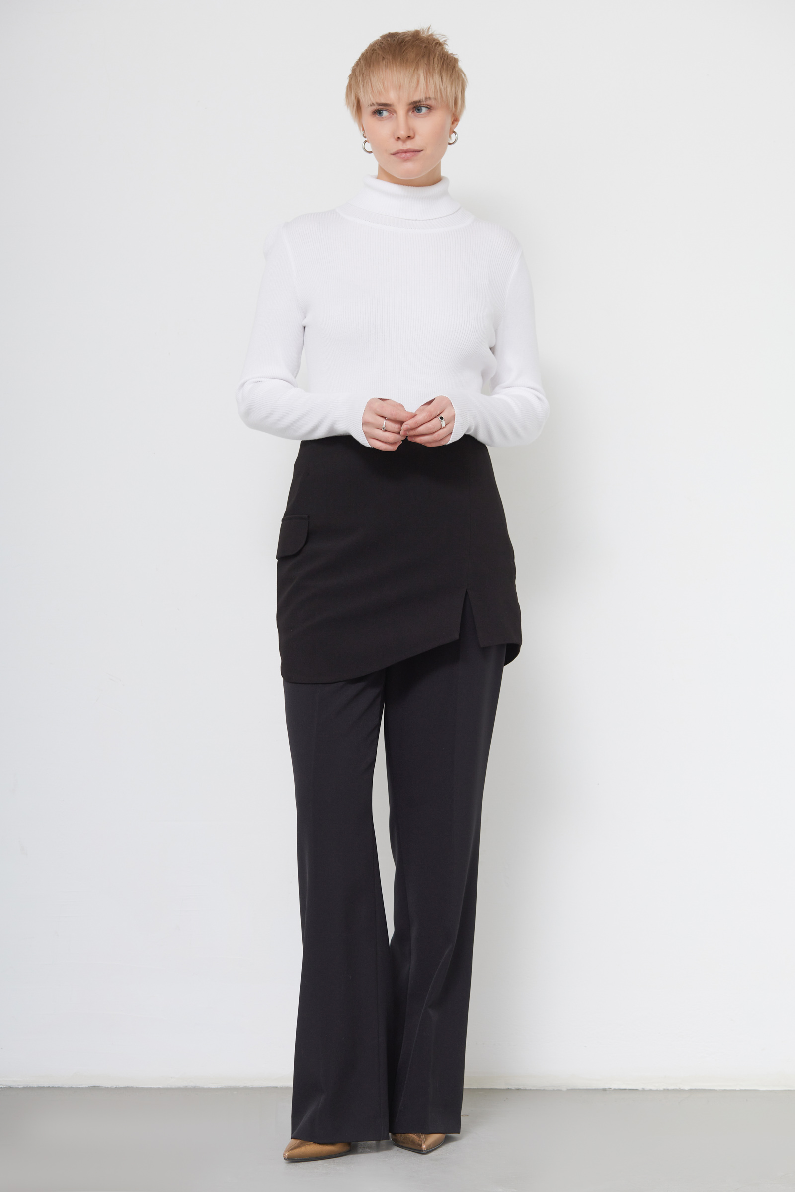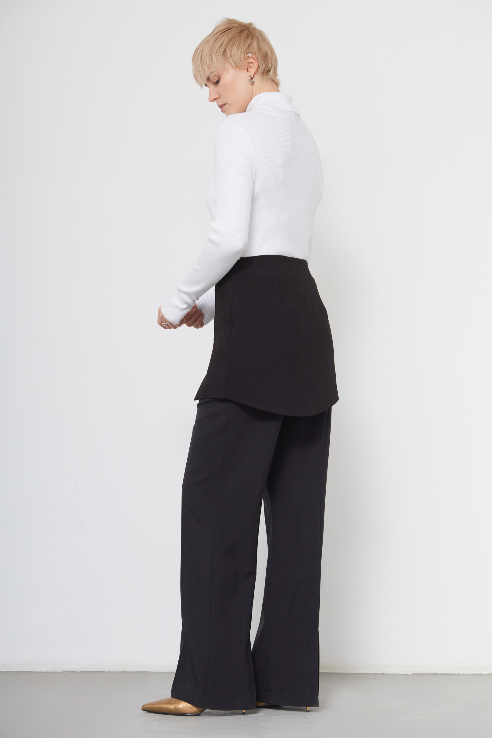Короткая юбка-баска из костюмной ткани с фигурным низом и разрезом.