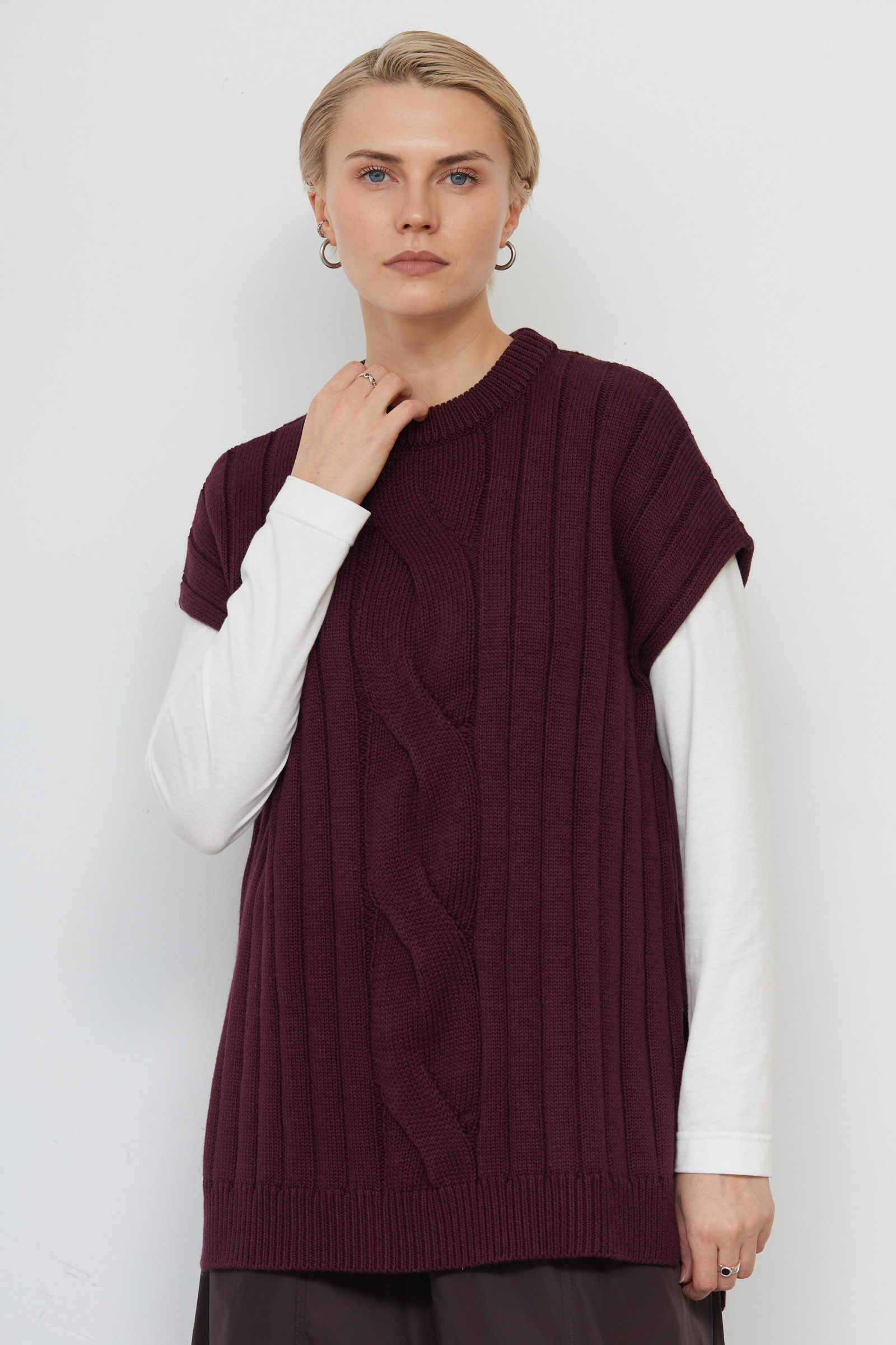 Жилет oversize из мягкого вязаного трикотажа с крупной косой.