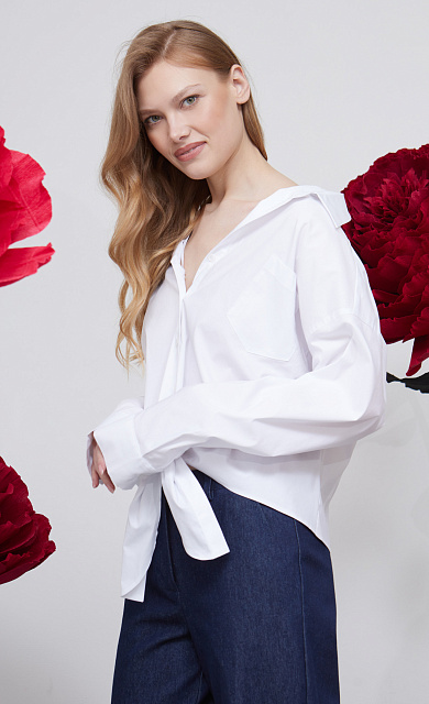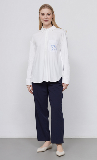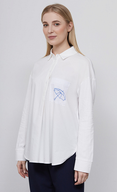Удлиненная рубашка из хлопка с декоративной вставкой и принтом.