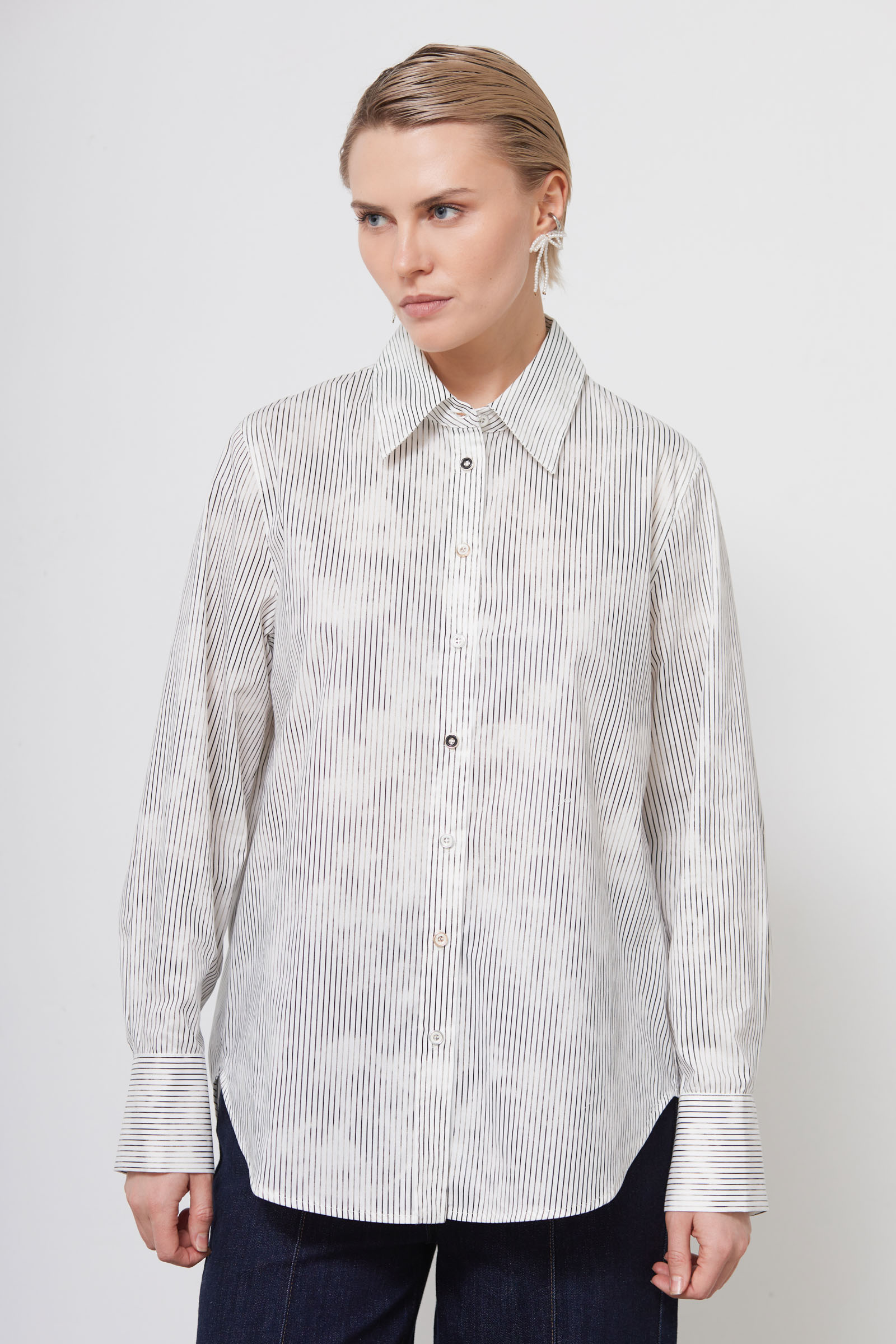 Рубашка oversize из хлопка в полоску с винтажным эффектом.