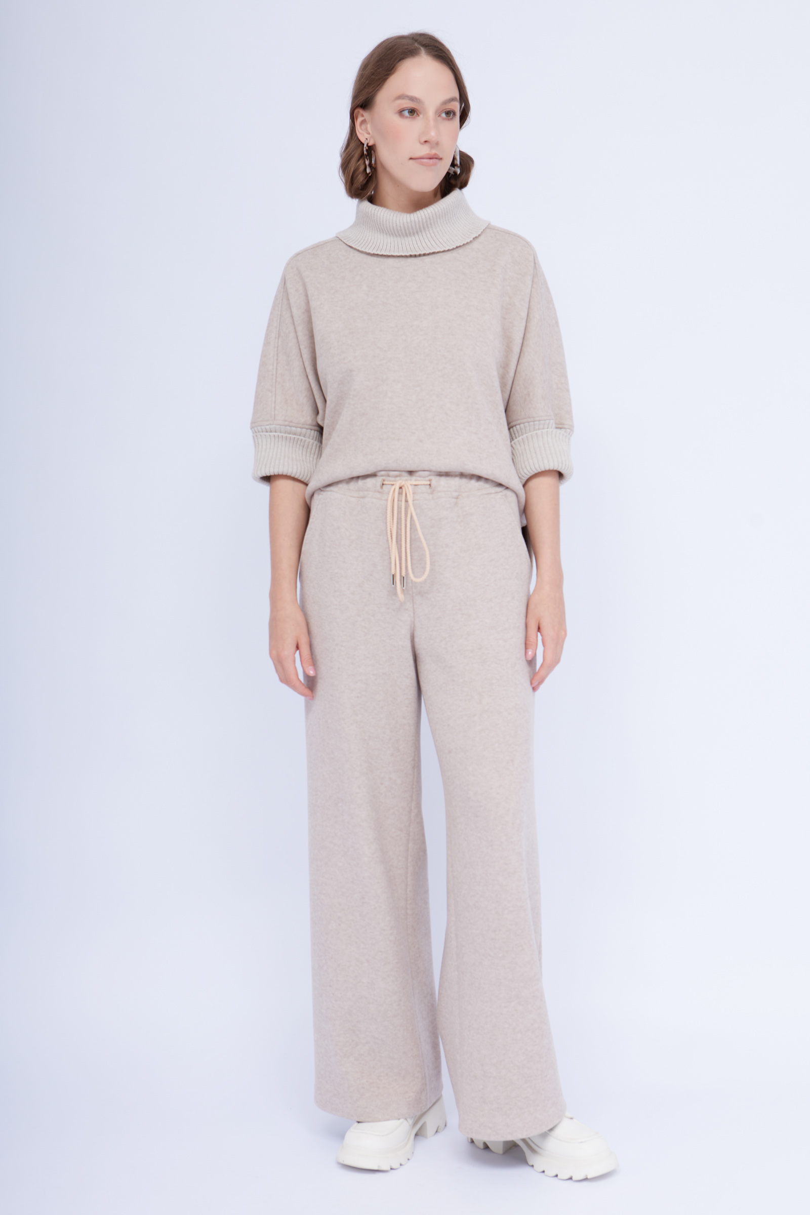Широкие брюки из мягкого вискозного трикотажа на эластичном поясе с кулиской.