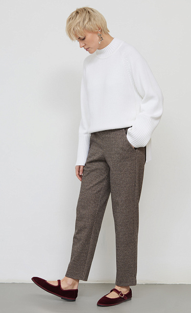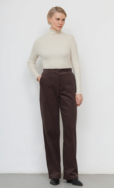 Широкие брюки из бархата с жатым эффектом и декоративными стрелками.