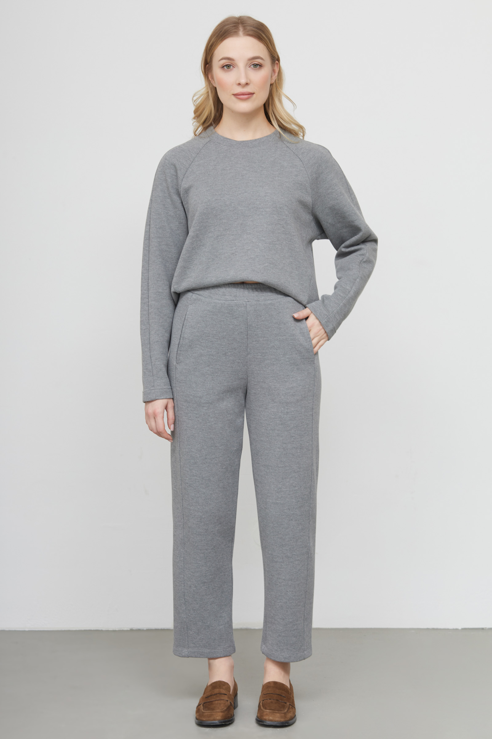 Слегка укороченные брюки из мягкого меланжевого трикотажа на эластичном поясе.