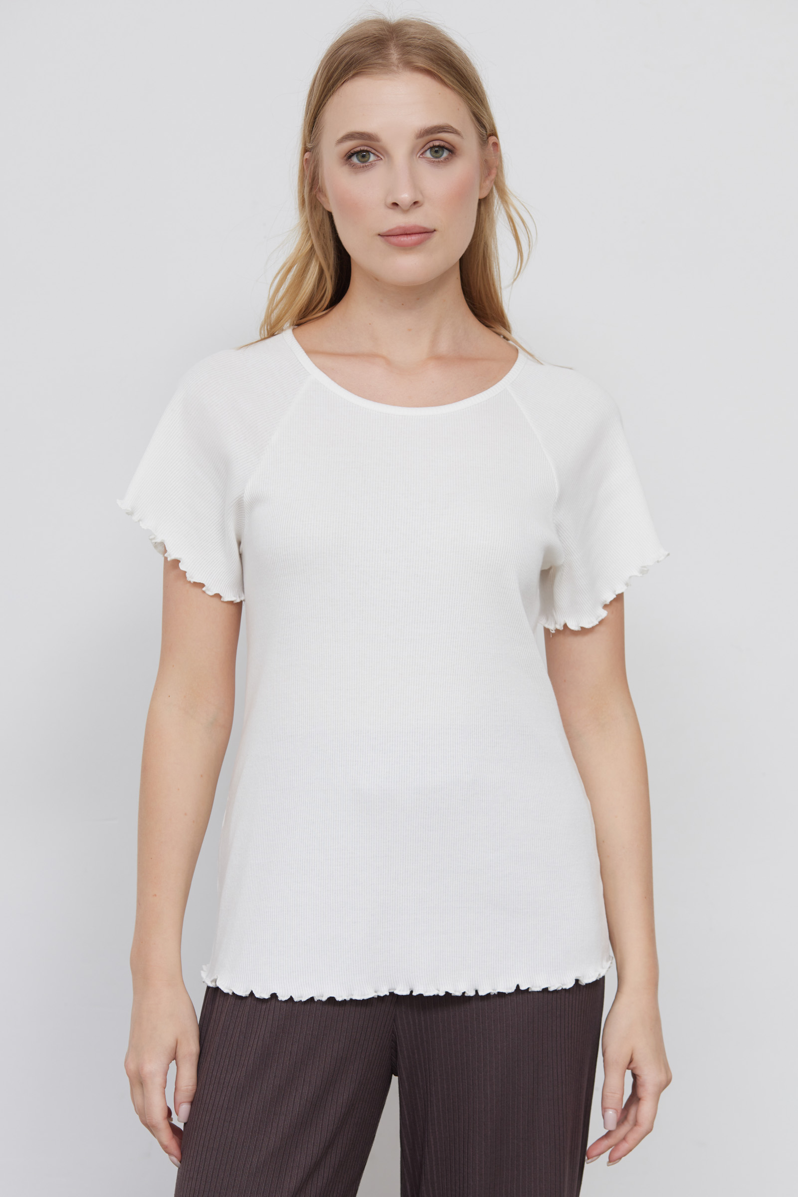 Футболка из мягкого хлопкового трикотажа в рубчик с волнистыми краями.