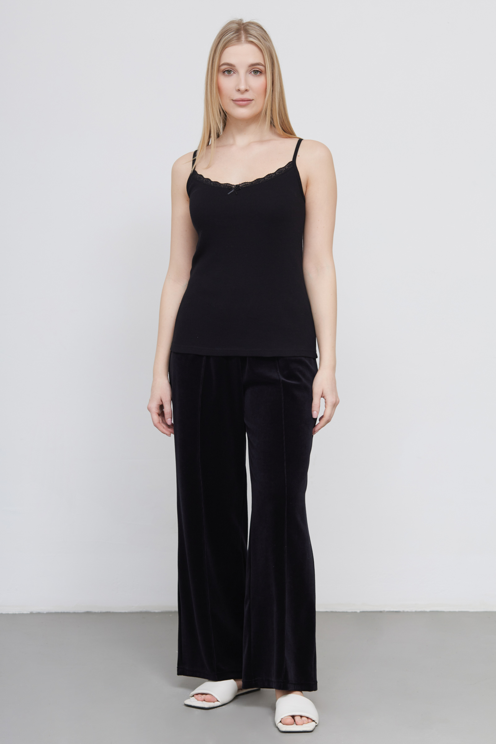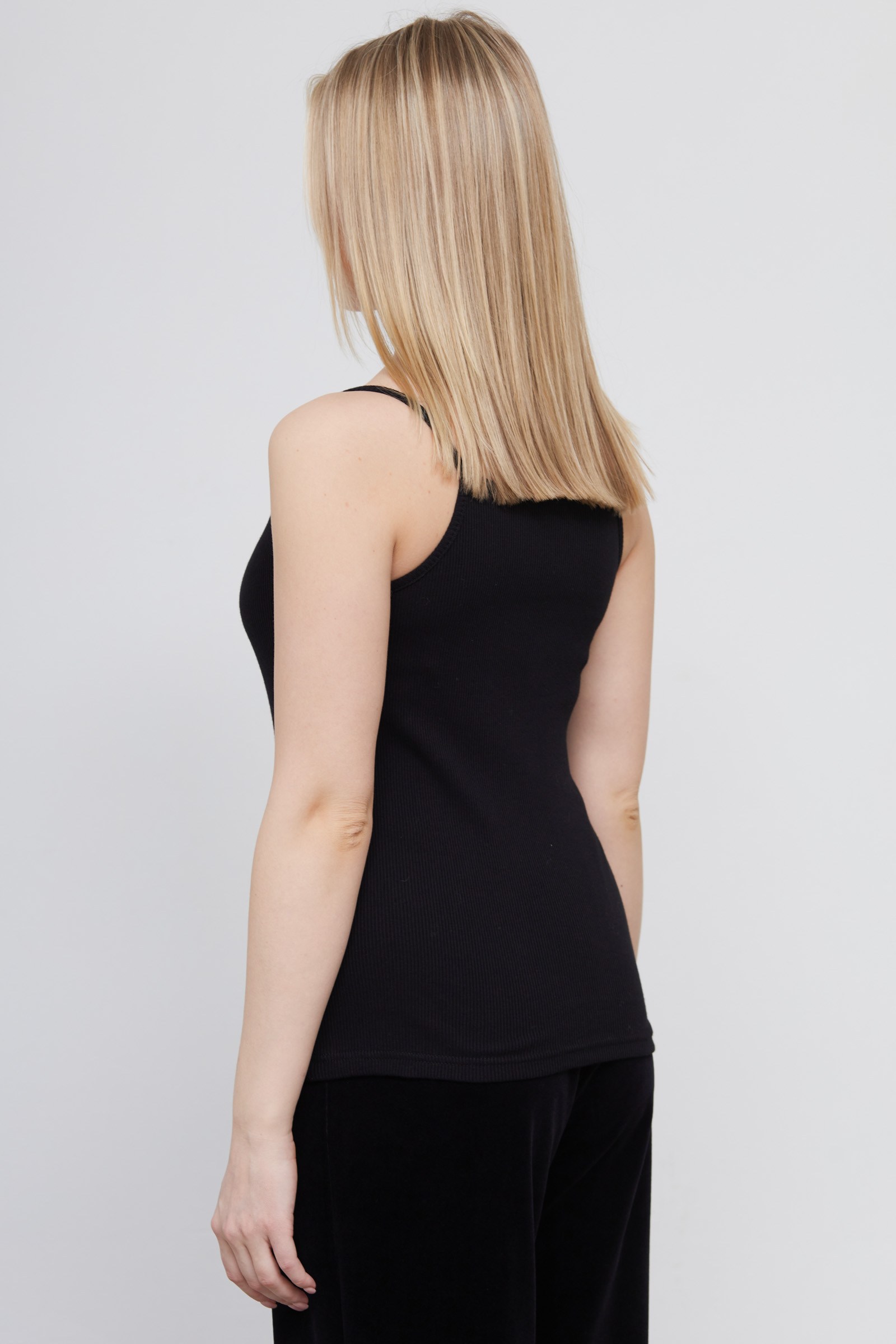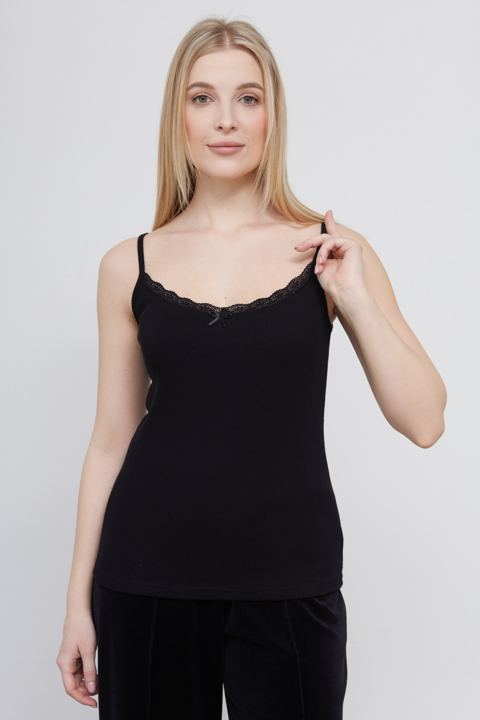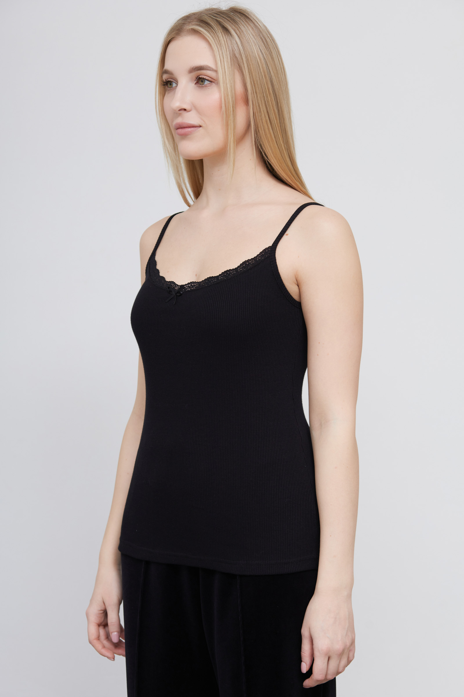 Топ из мягкого хлопкового трикотажа в рубчик на тонких бретелях.