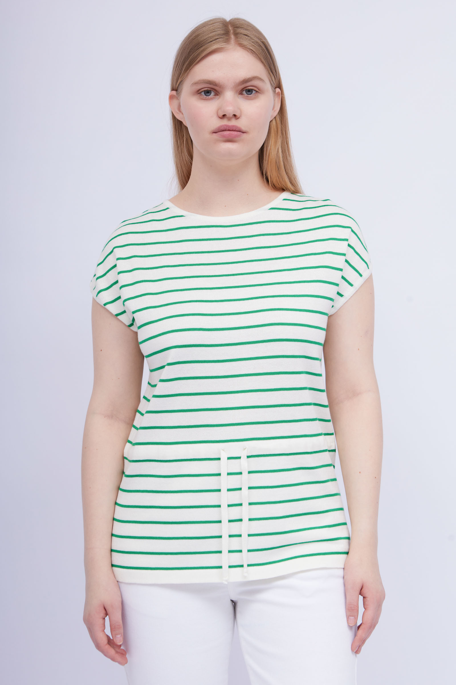 Джемпер тонкой вязки в полоску с кулиской на талии.