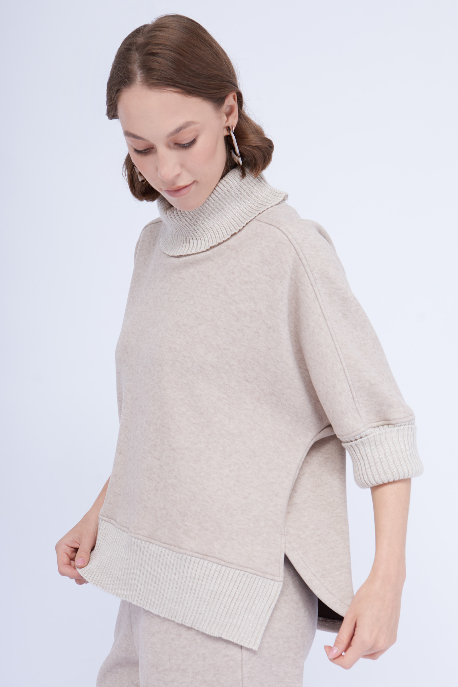 Джемпер из мягкой вискозной ткани с короткими рукавами и трикотажной отделкой.