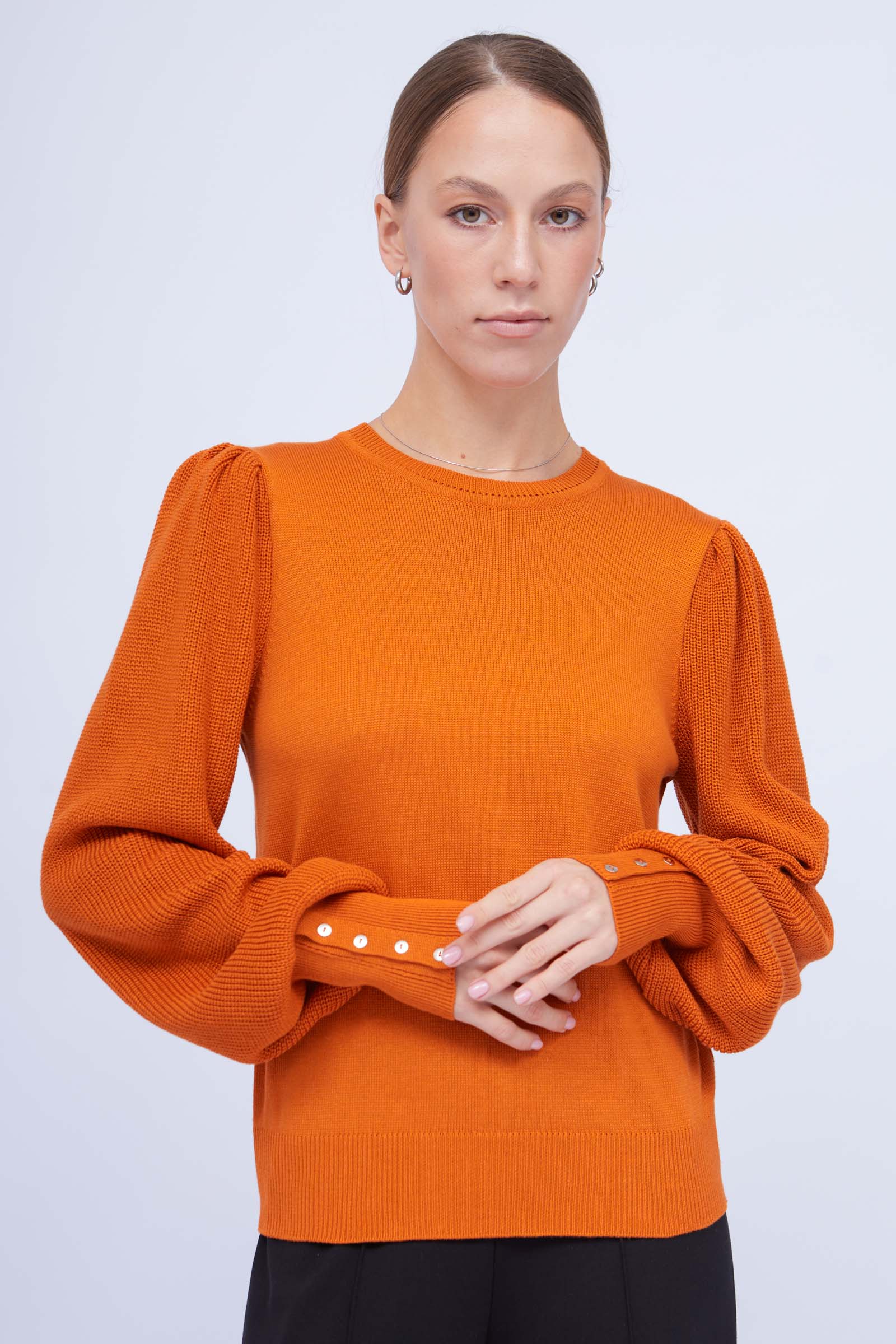 Укороченный джемпер из вязаного трикотажа с рукавами-буфами.