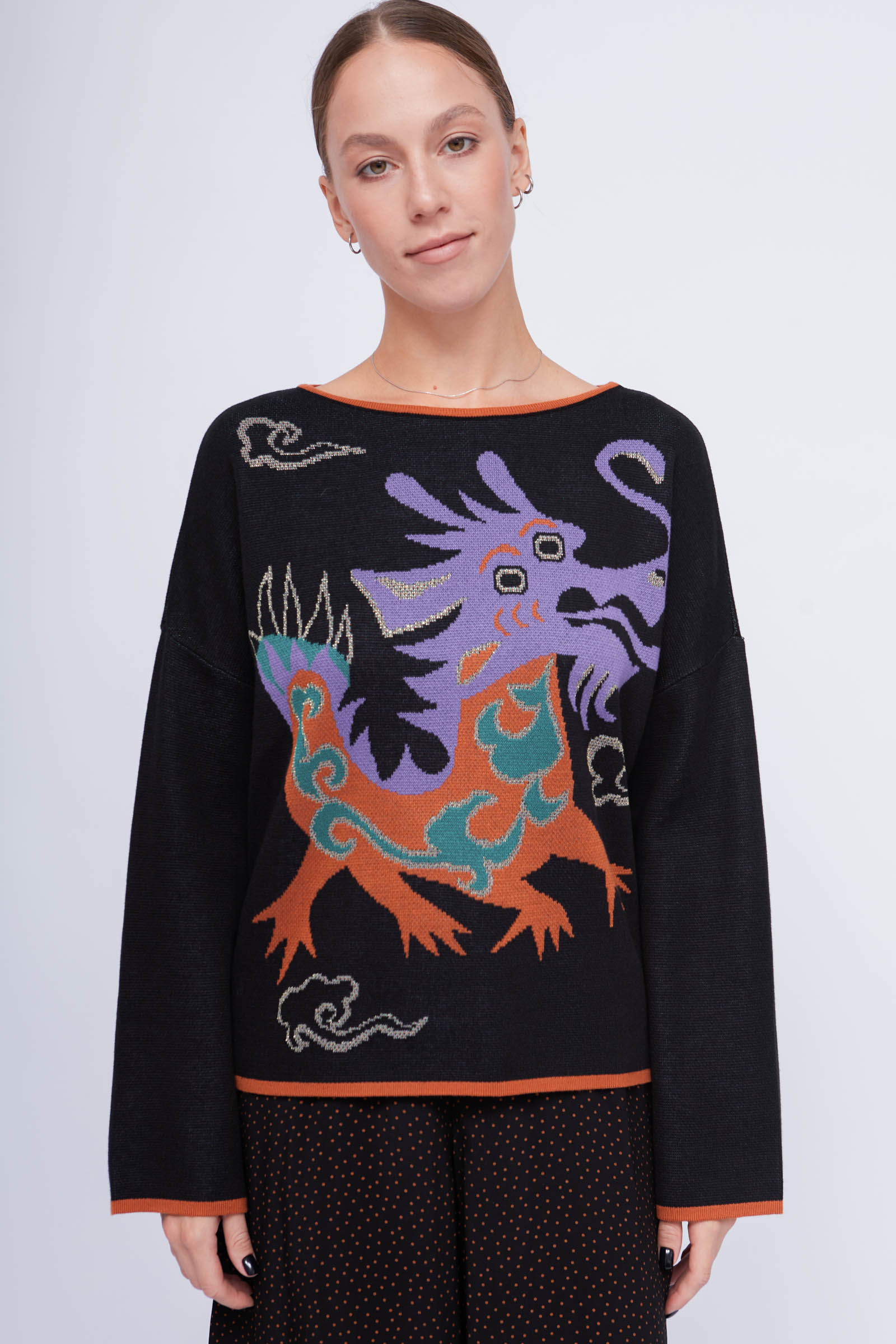 Вязаный джемпер с жаккардовым рисунком и контрастными полосками.