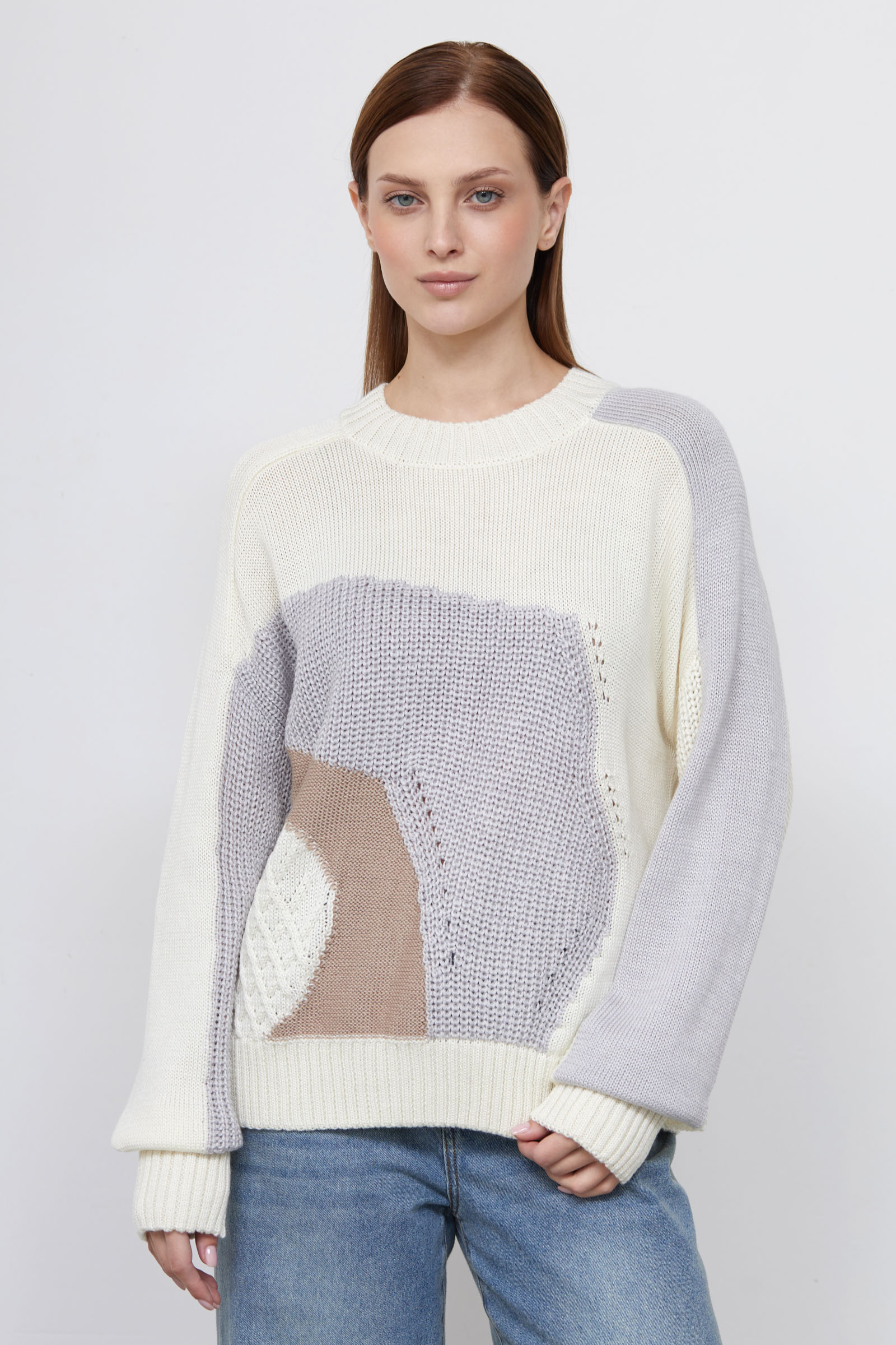 Джемпер комбинированной вязки с шерстью в стиле колор-блок.