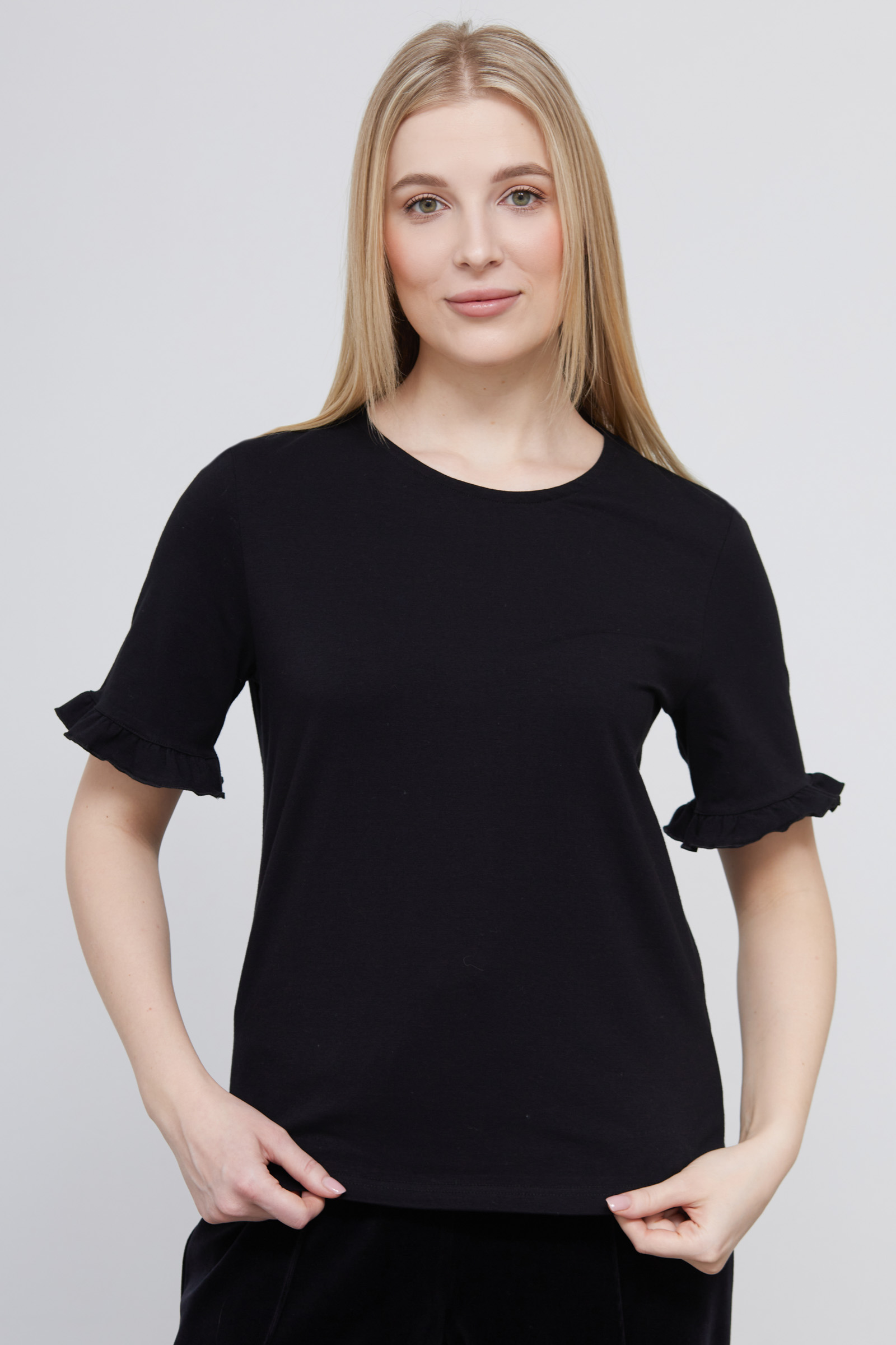 Футболка из мягкого хлопкового трикотажа с оборками на рукавах.
