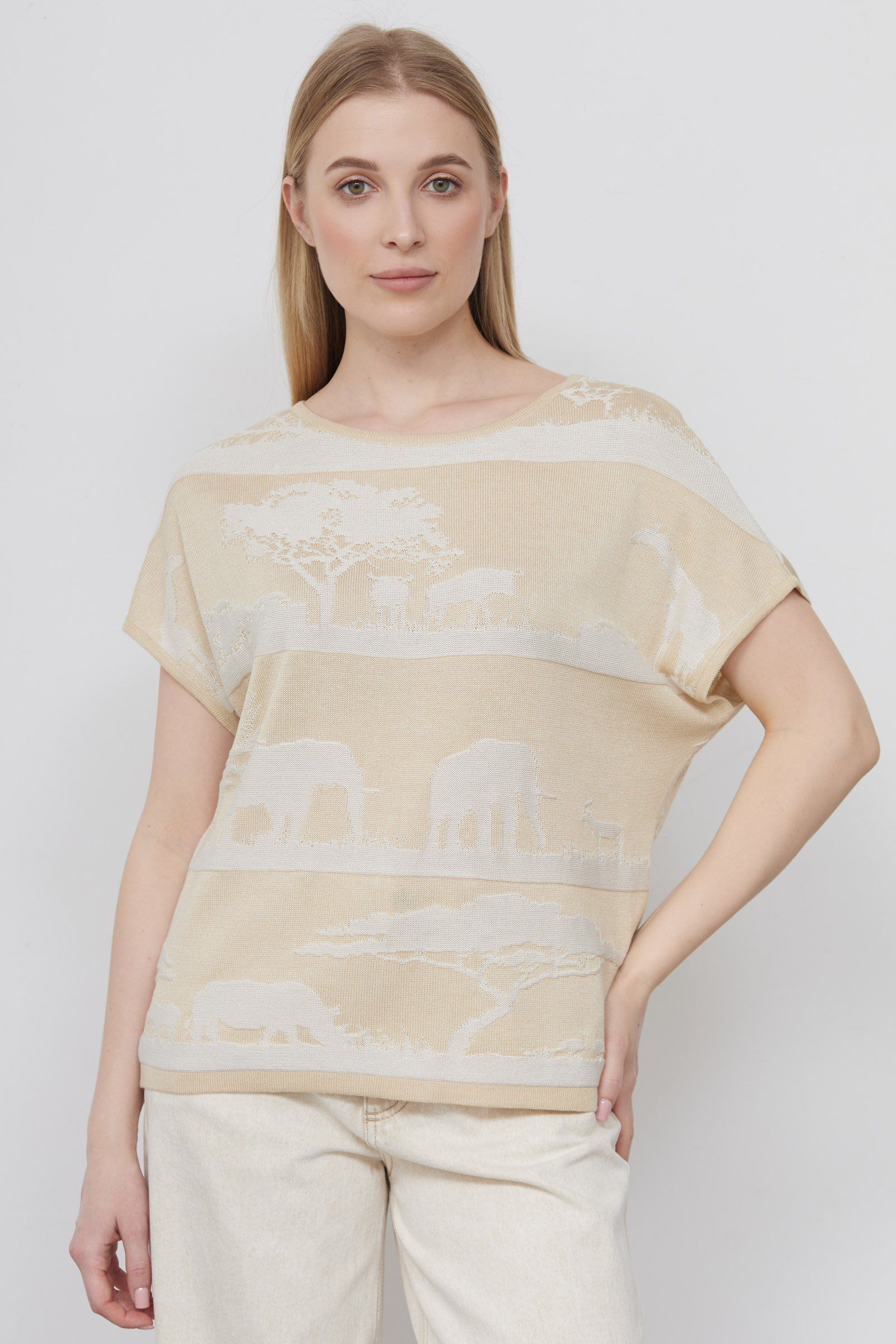Джемпер жаккардовой вязки с короткими рукавами и принтом "сафари".
