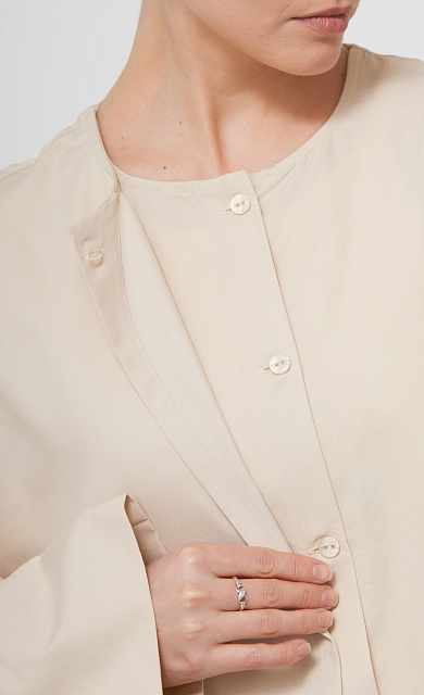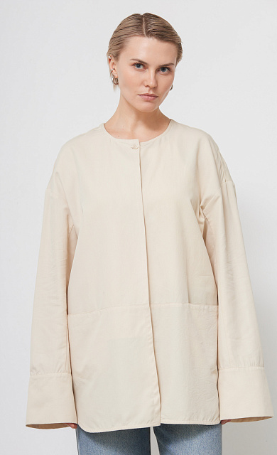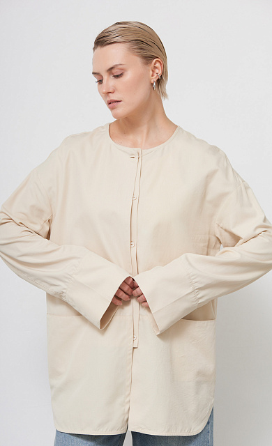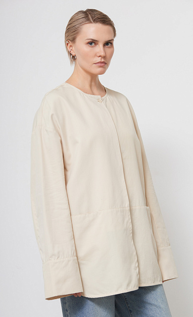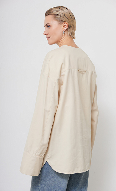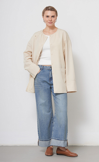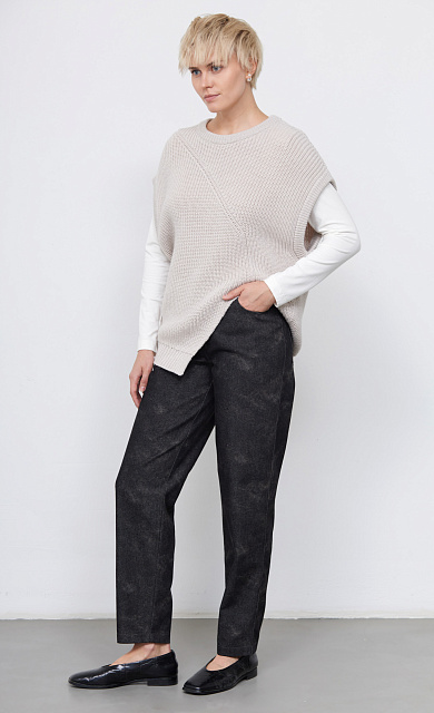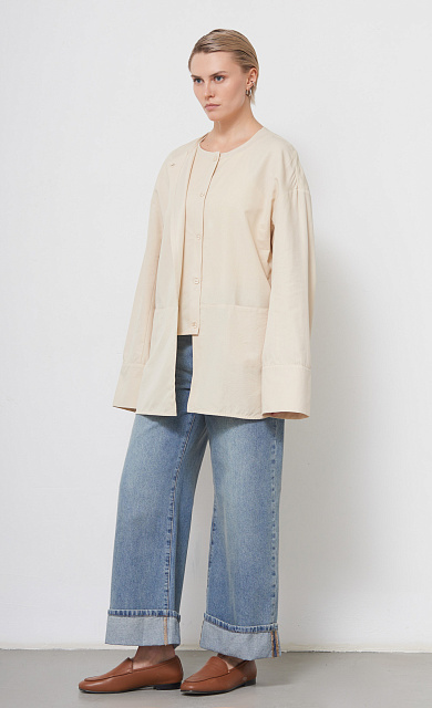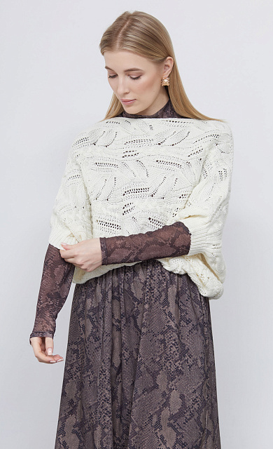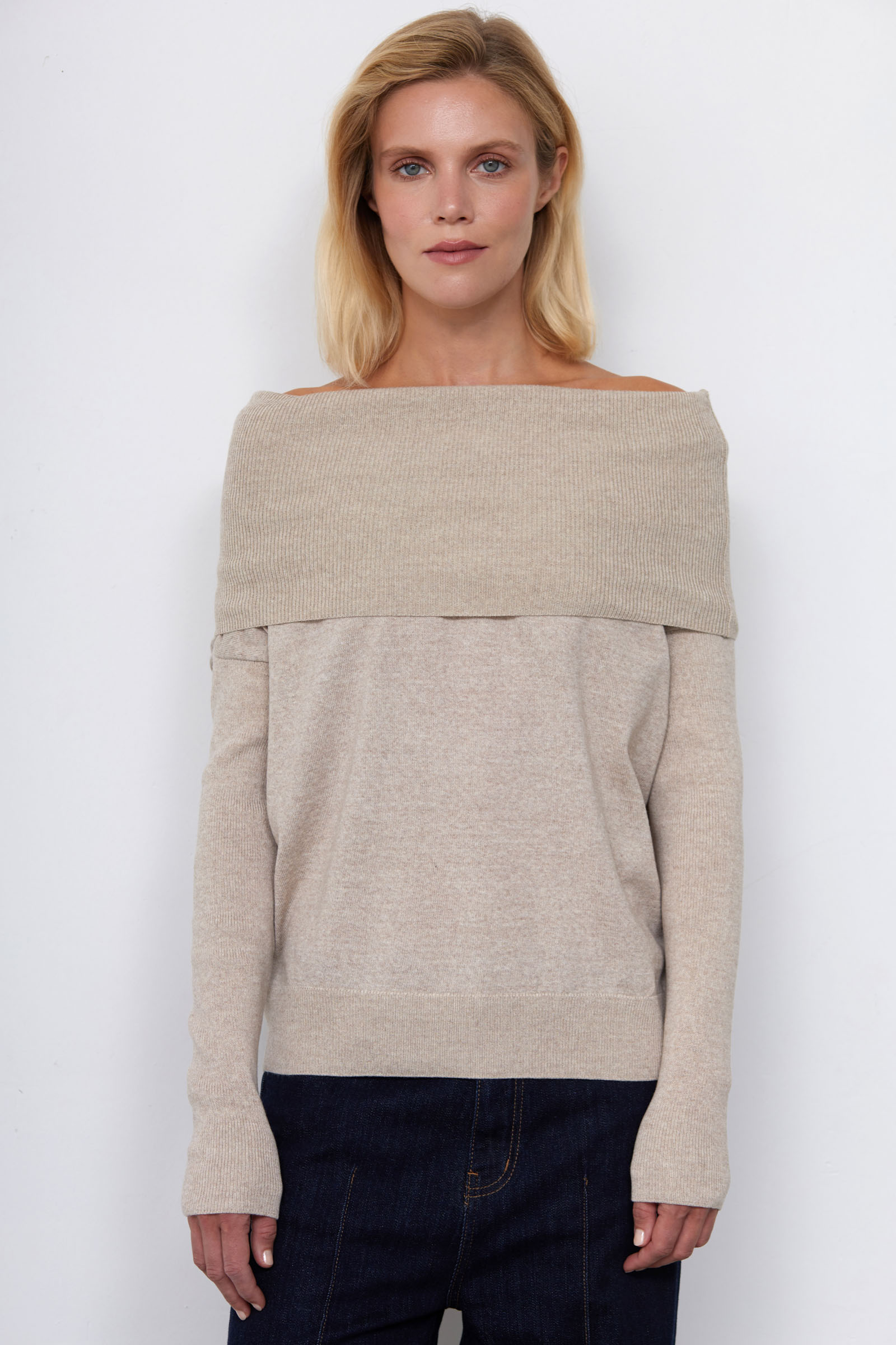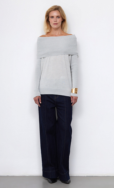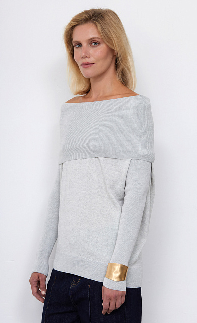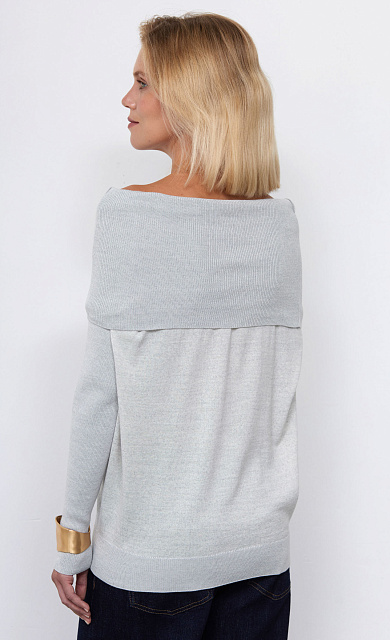 Полушерстяной свитер с широким воротником-трансформером и рукавами в рубчик.