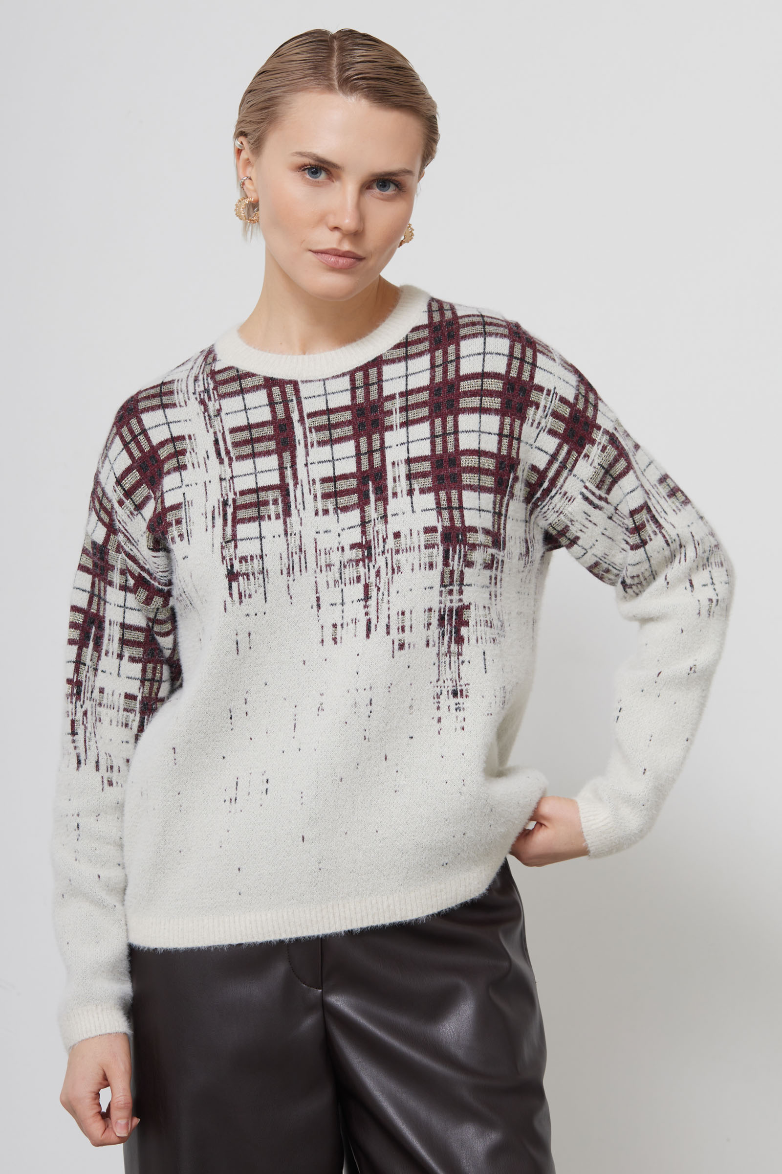 Джемпер из мягкого пушистого трикотажа жаккардовой вязки с люрексом.