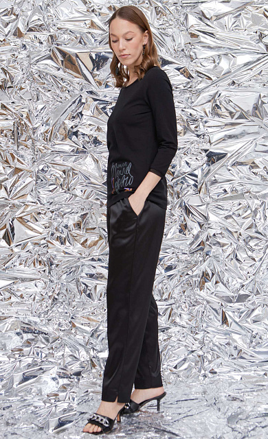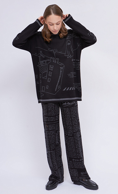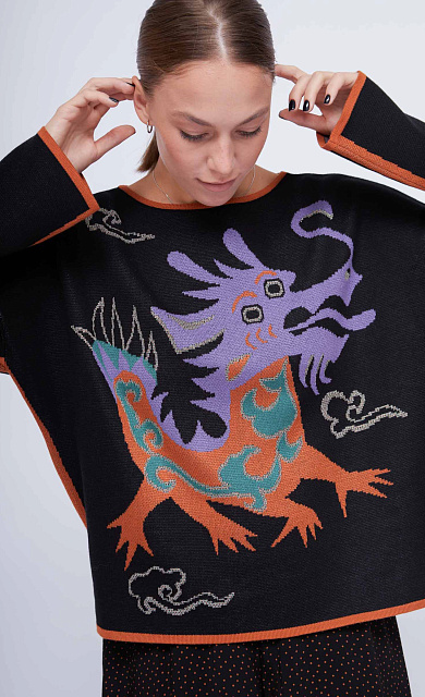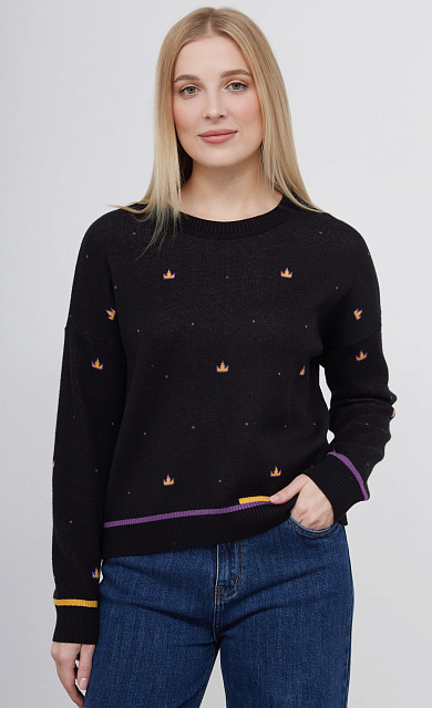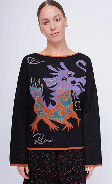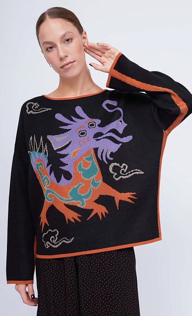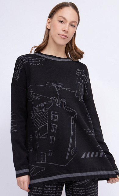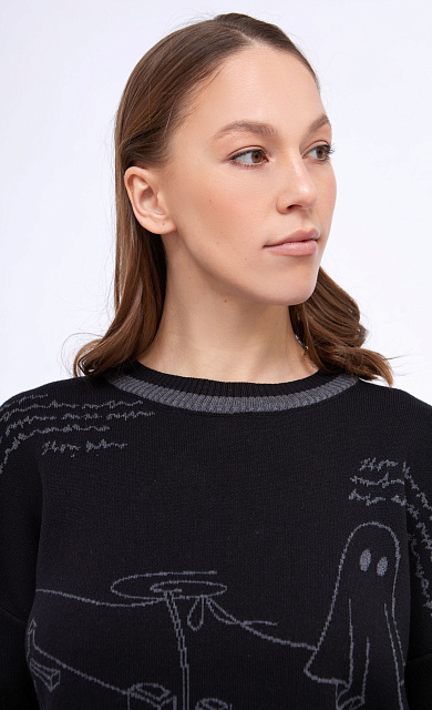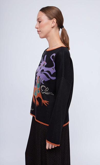 Джемпер из тонкого вязаного трикотажа с цветочным рисунком из люрекса.
