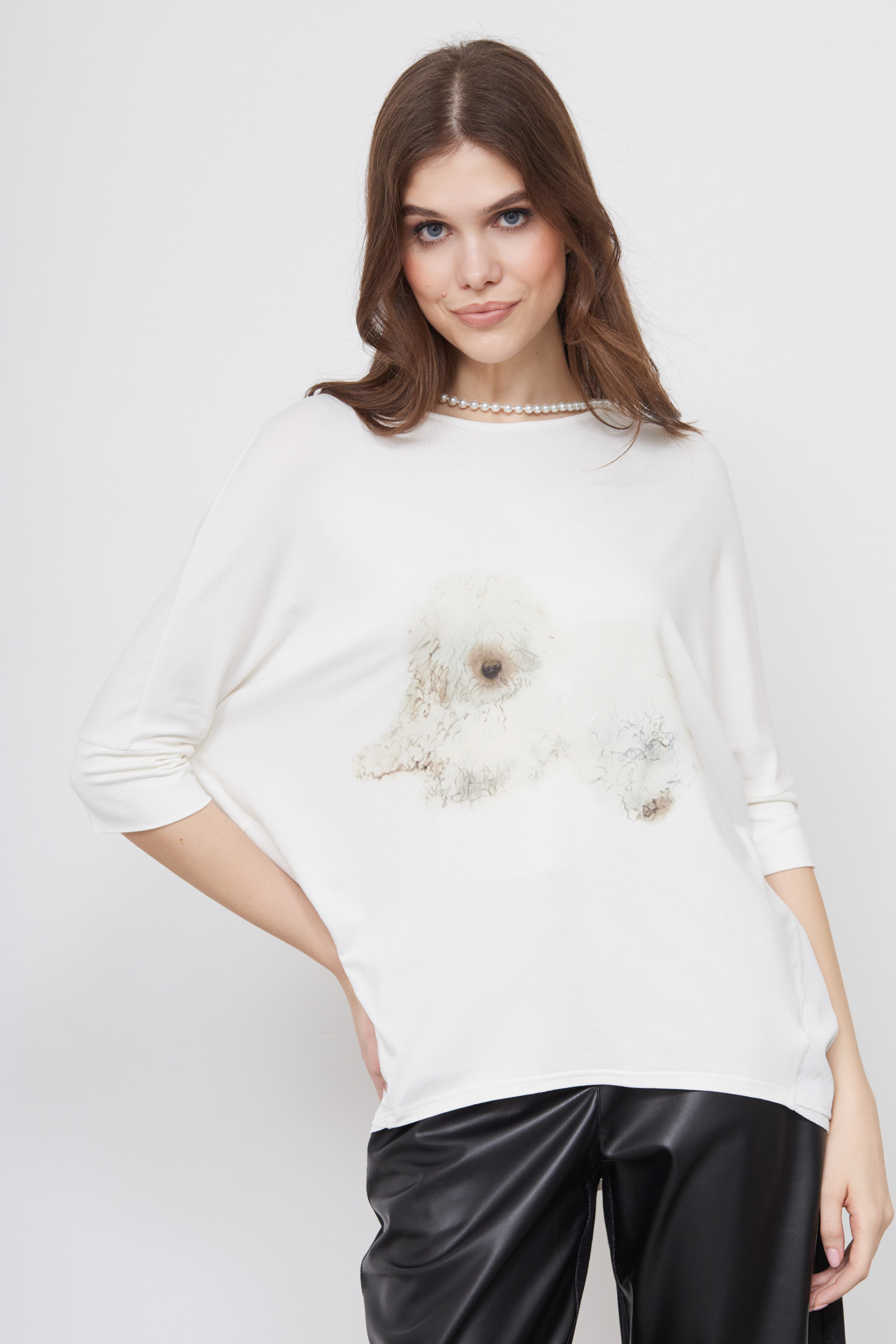 Джемпер oversize из тонкого вискозного трикотажа с печатным принтом.