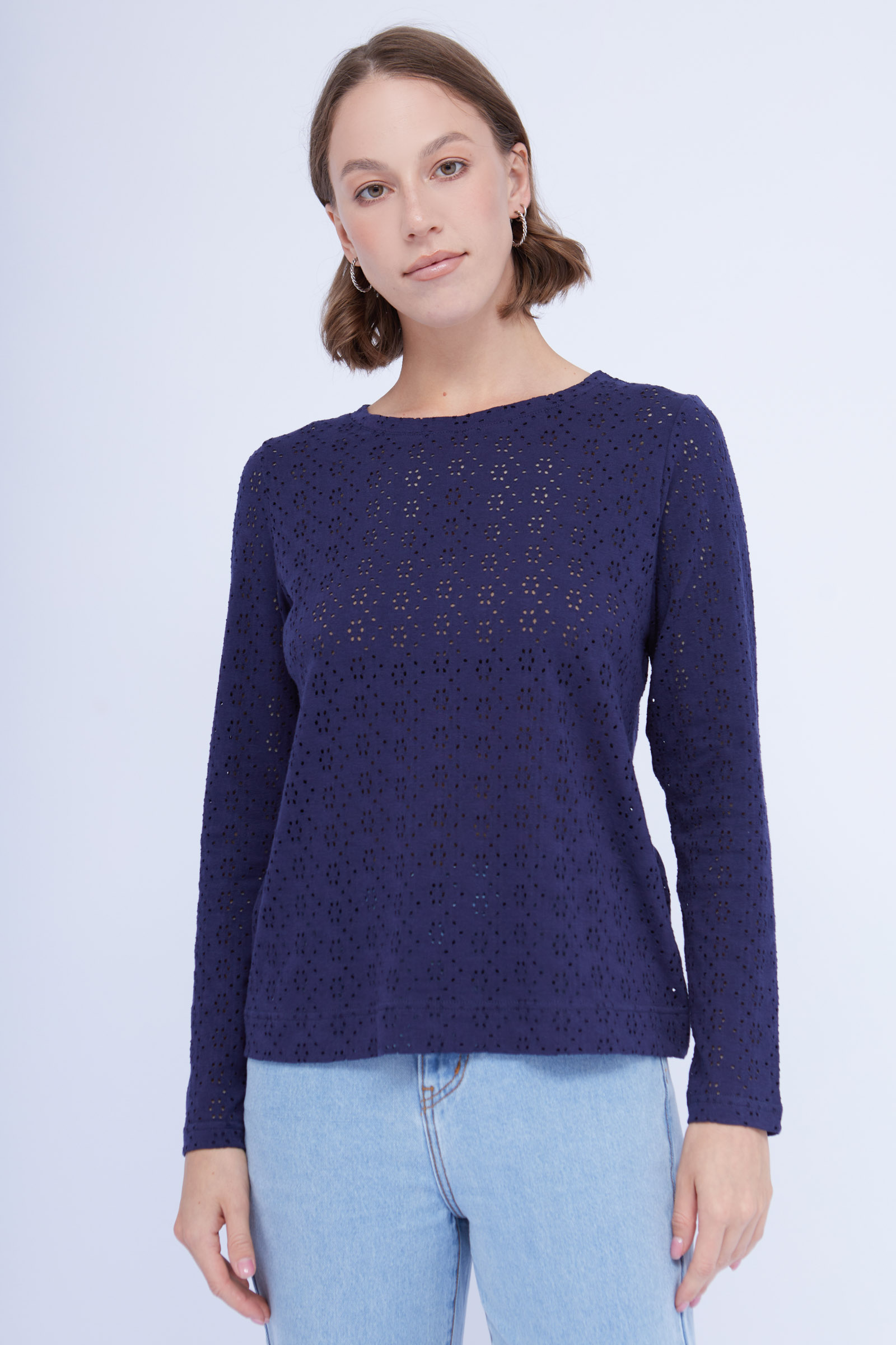 Базовый лонгслив из хлопкового трикотажа с декоративной перфорацией.