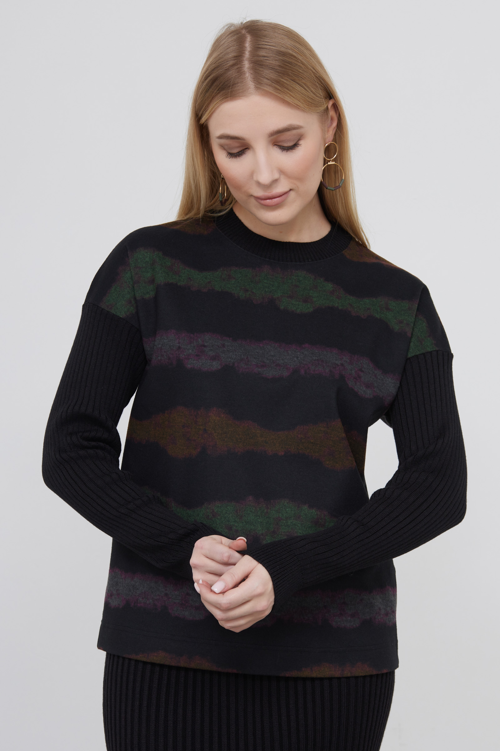 Комбинированный джемпер из мягкого трикотажа с начесом и вязаными рукавами.