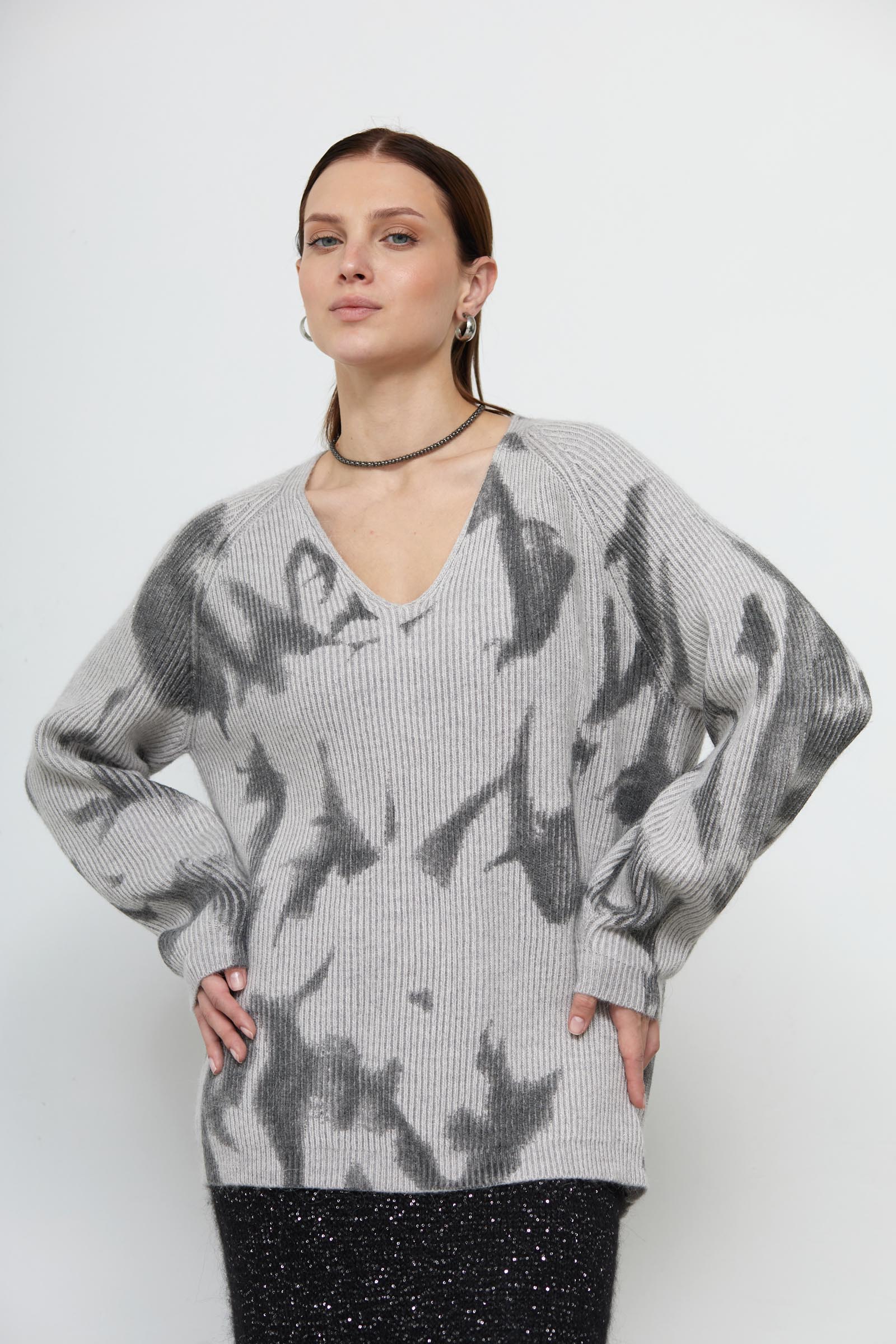Джемпер oversize из мягкого вязаного трикотажа в рубчик с рисунком в стиле тай-дай.