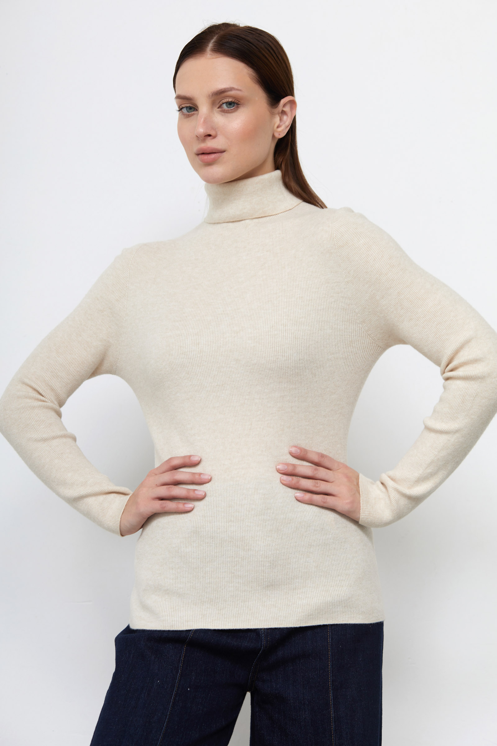 Базовая водолазка из мягкого вязаного трикотажа в рубчик.