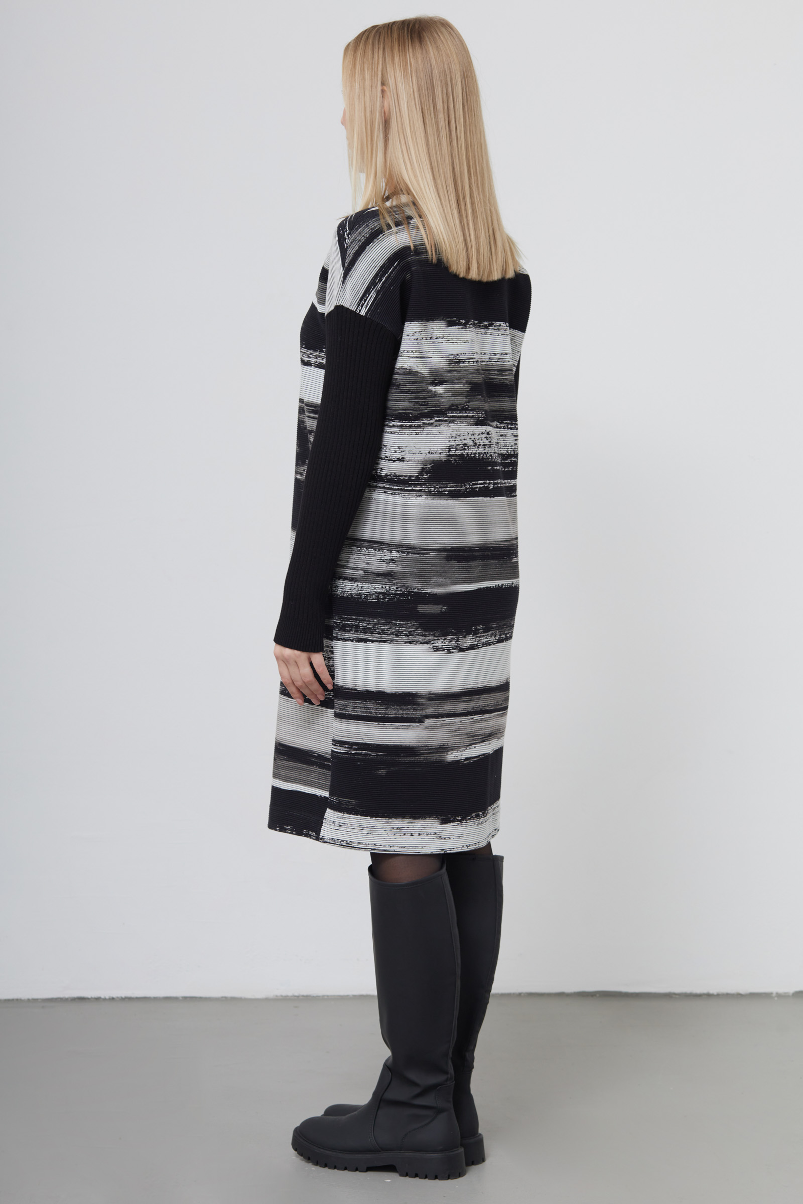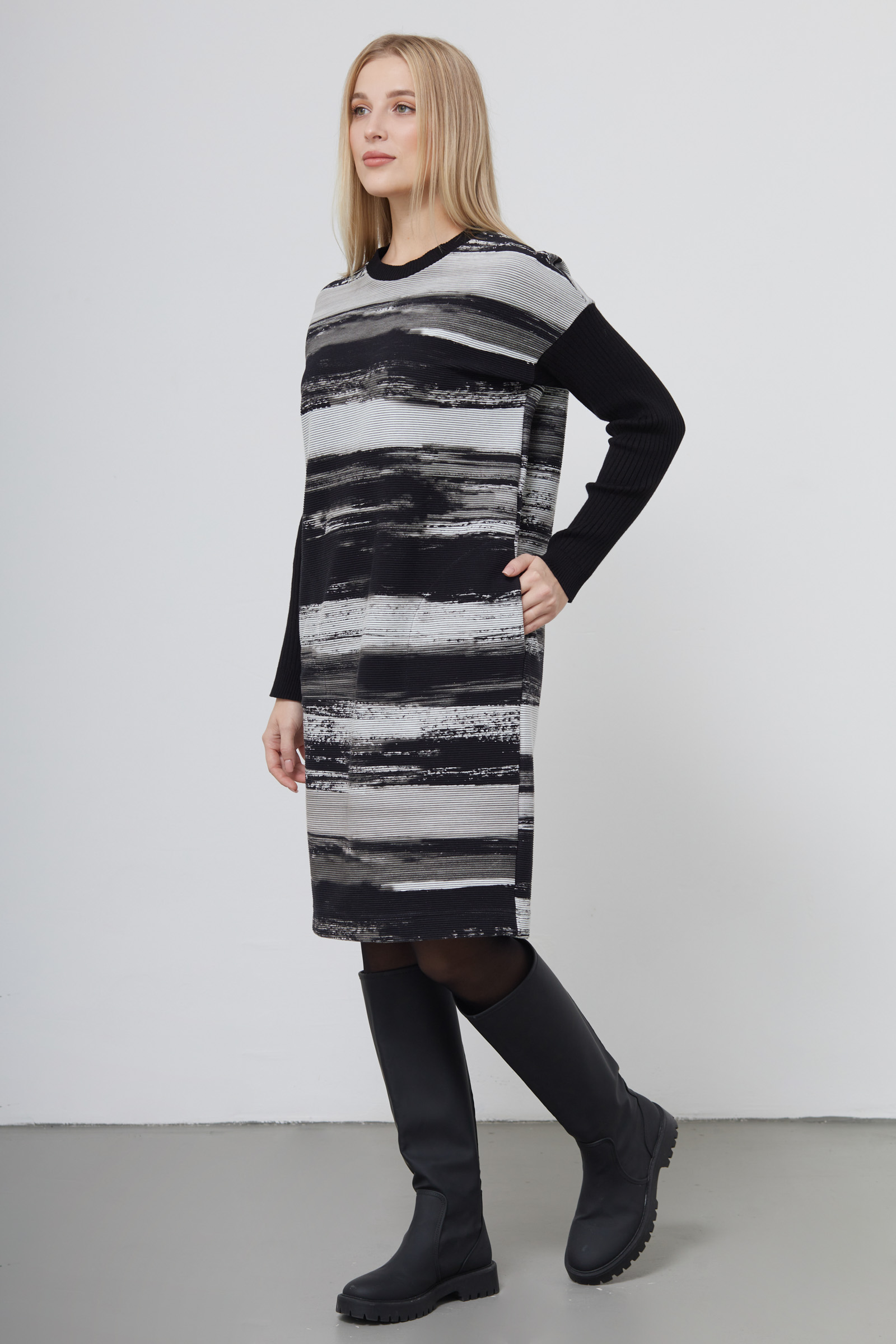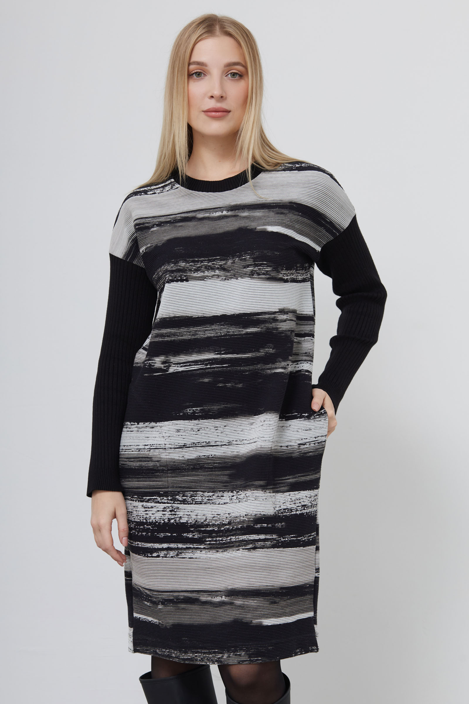 Платье oversize из фактурного трикотажа с вязаными рукавами.