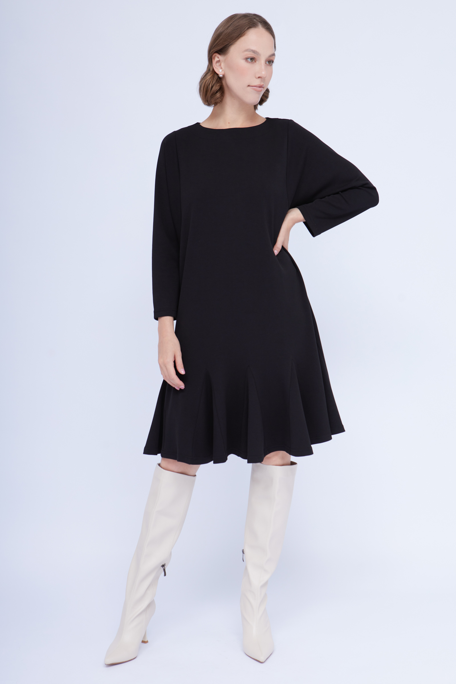 Платье годе из мягкого неопрена с длинными рукавами.