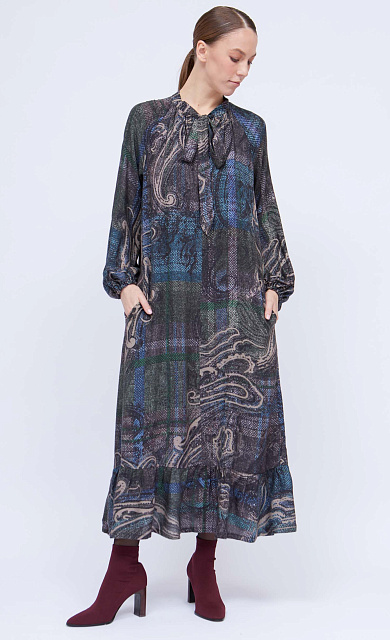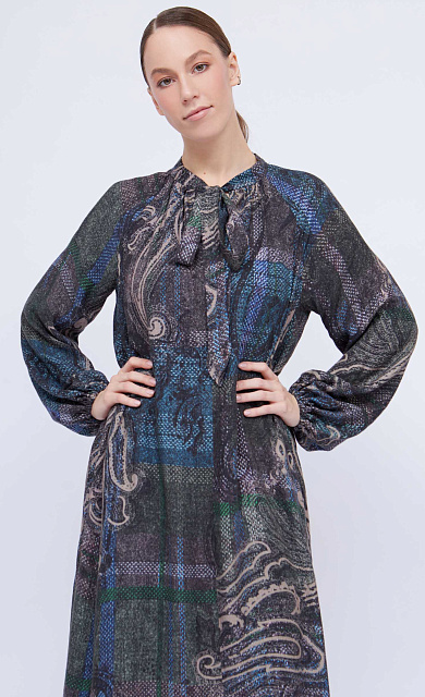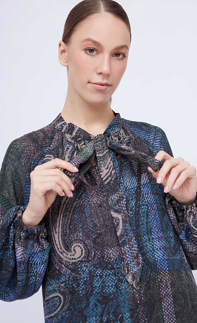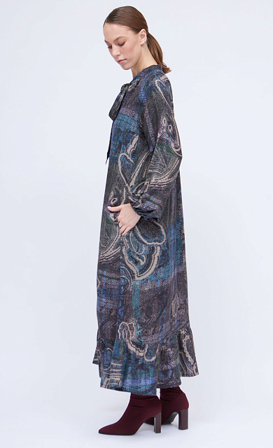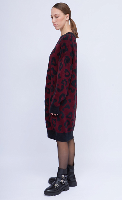 Короткое платье из мягкой фланелевой ткани на молнии с рельефными швами.