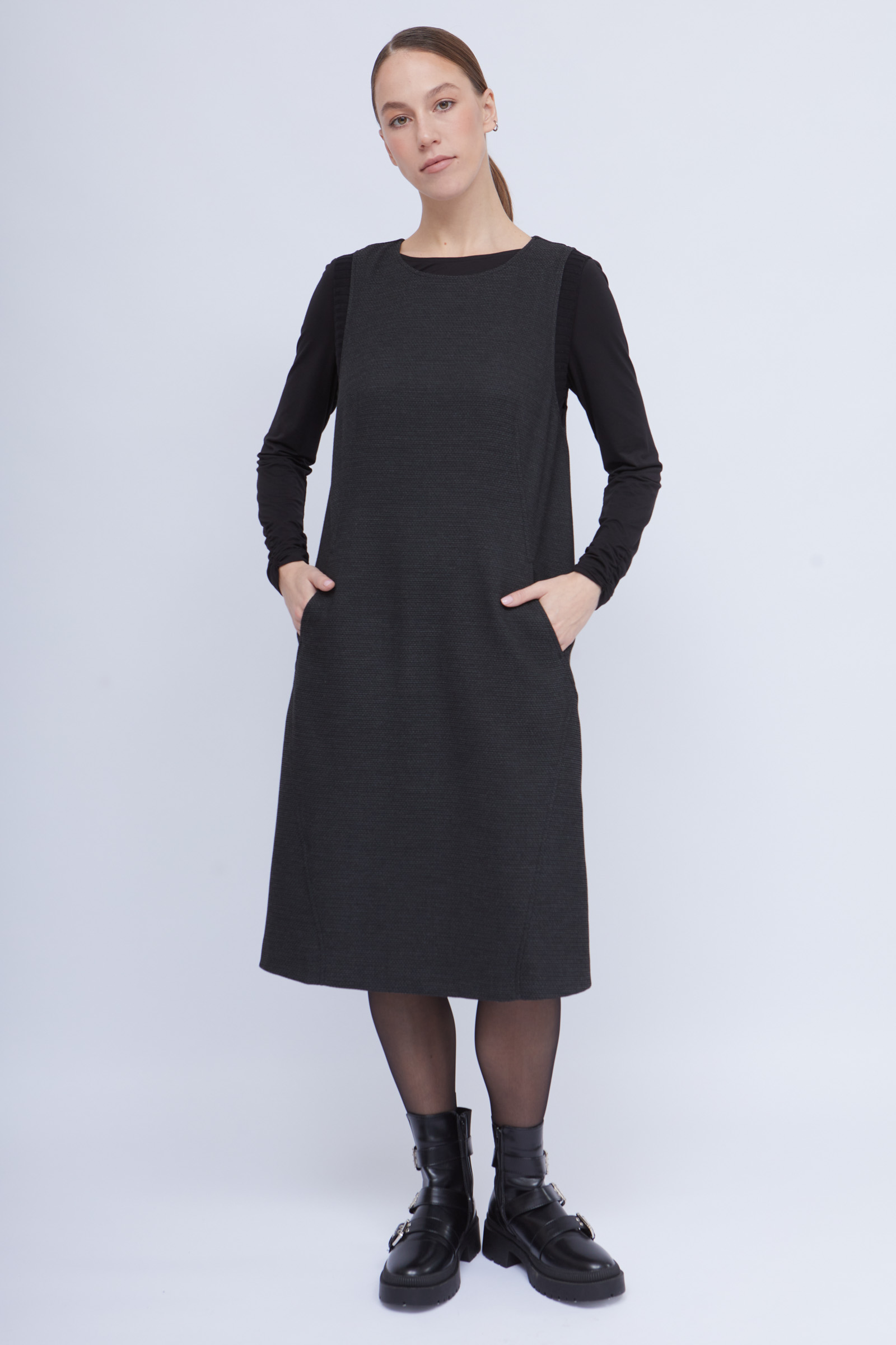 Сарафан из фактурной ткани с трикотажной отделкой.