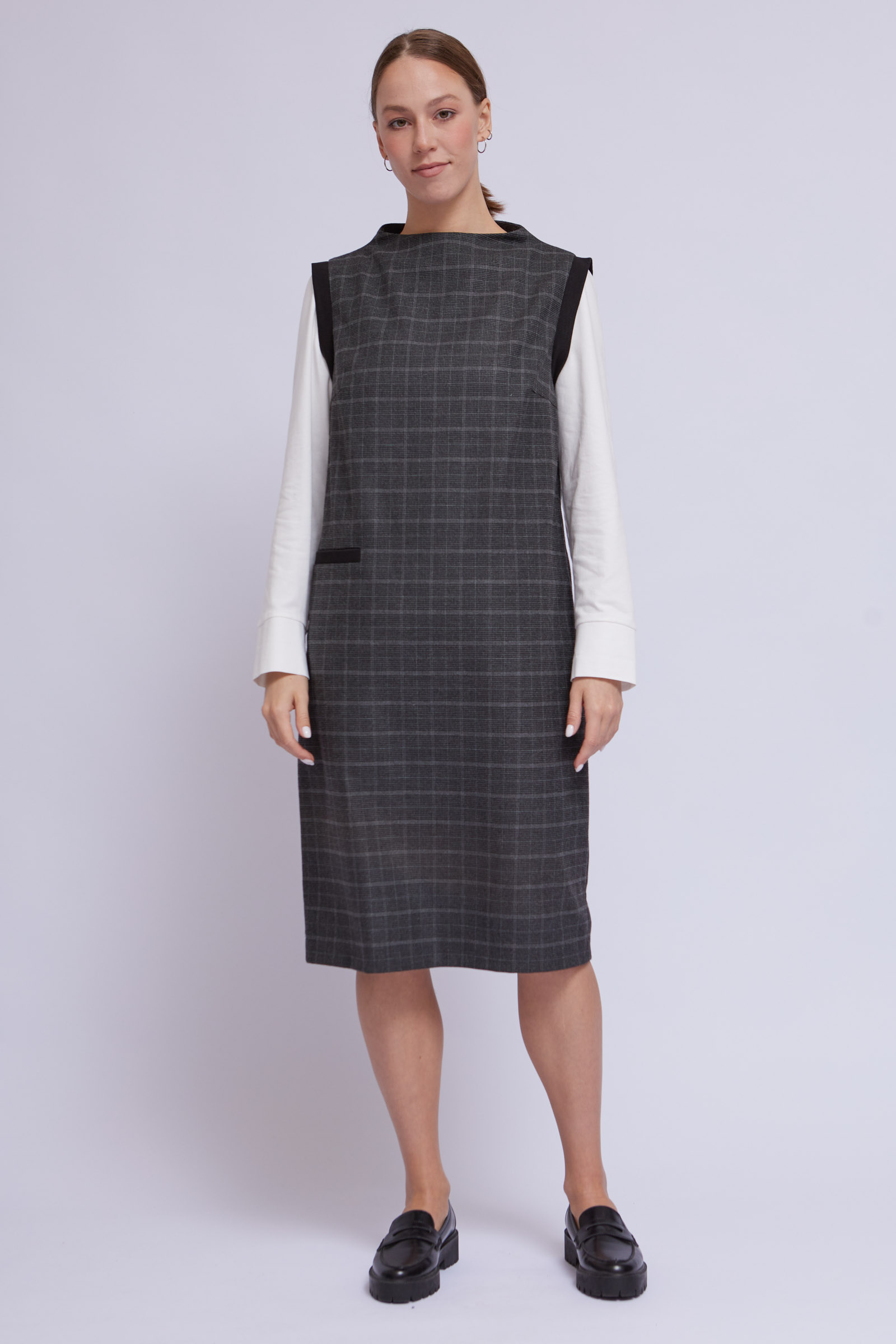 Платье без рукавов из поливискозы с отделкой из рибаны.