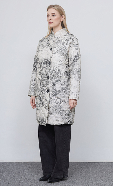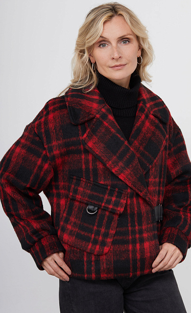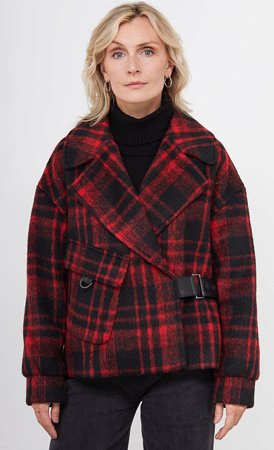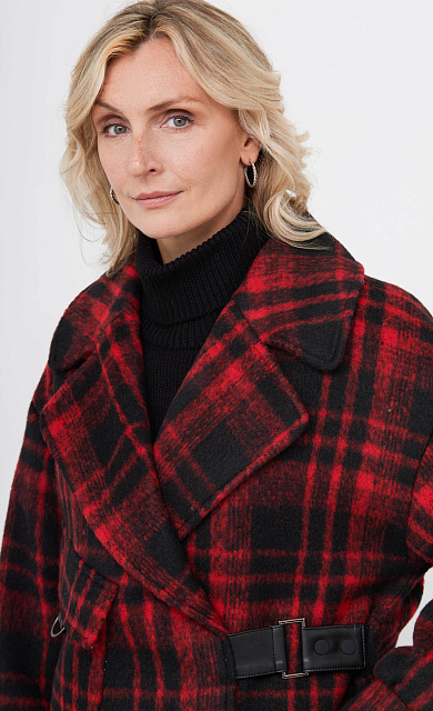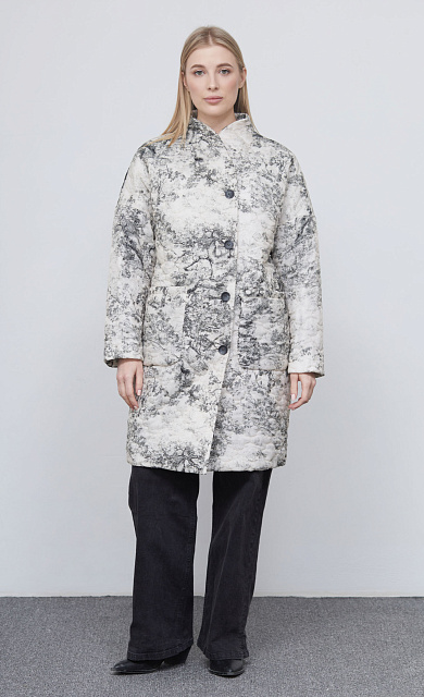 Двубортное пальто oversize с английским воротником и скошенной шлицей.