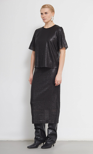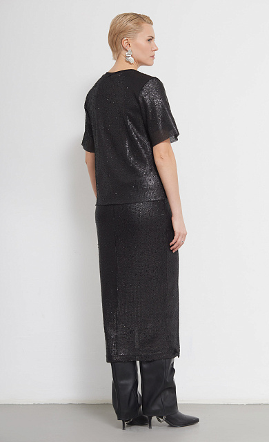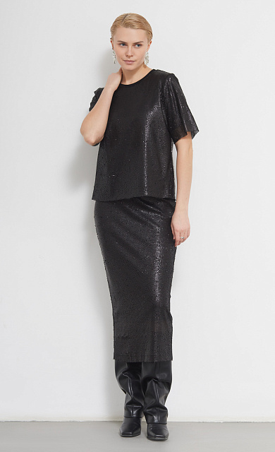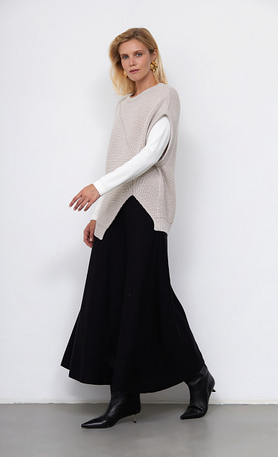 Двуслойная юбка миди из смесовой вискозы с разрезом.