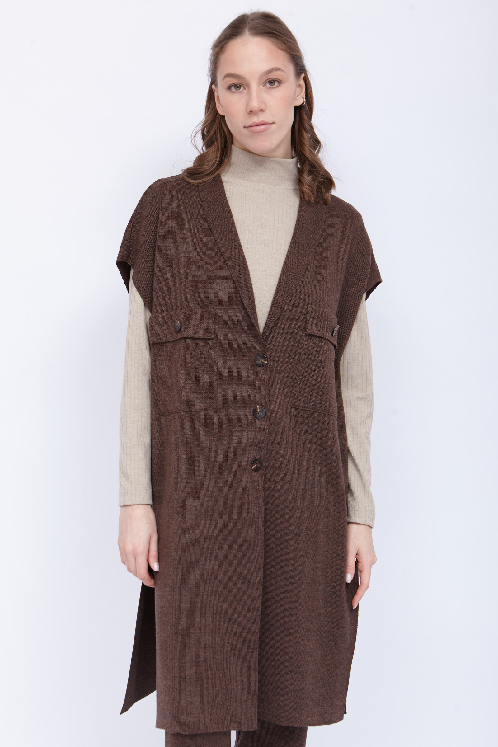 Длинный жилет из полушерстяного вязаного трикотажа.