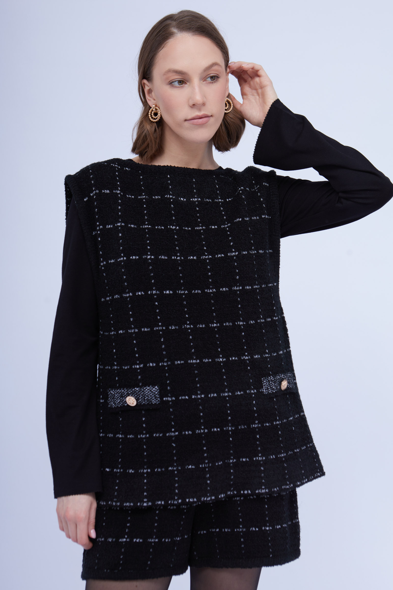 Жилет oversize из буклированного трикотажа в клетку.
