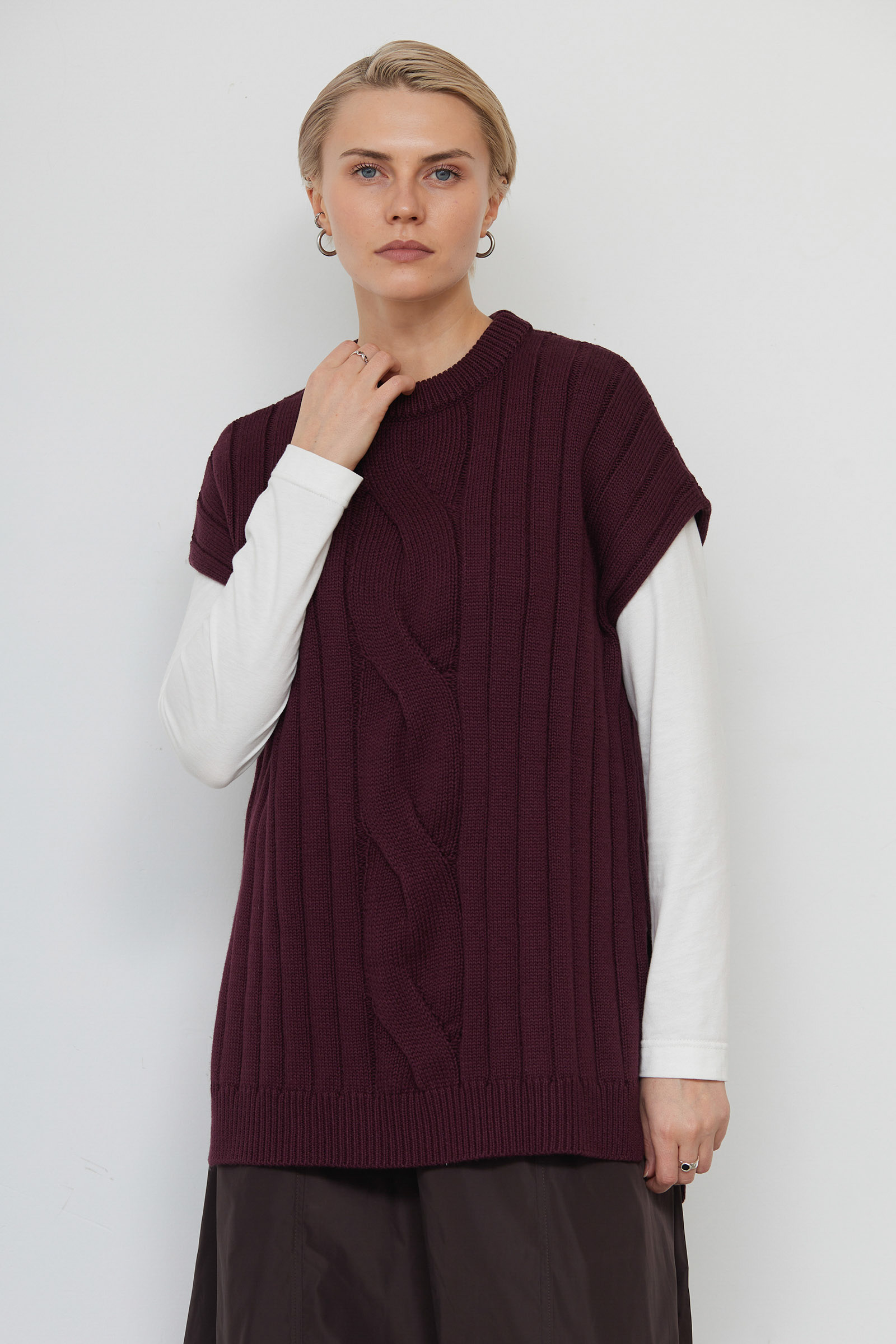 Жилет oversize из мягкого вязаного трикотажа с крупной косой.
