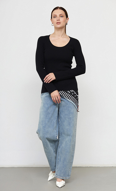 Удлиненный жилет из поливискозы с декоративными выступающими карманами.